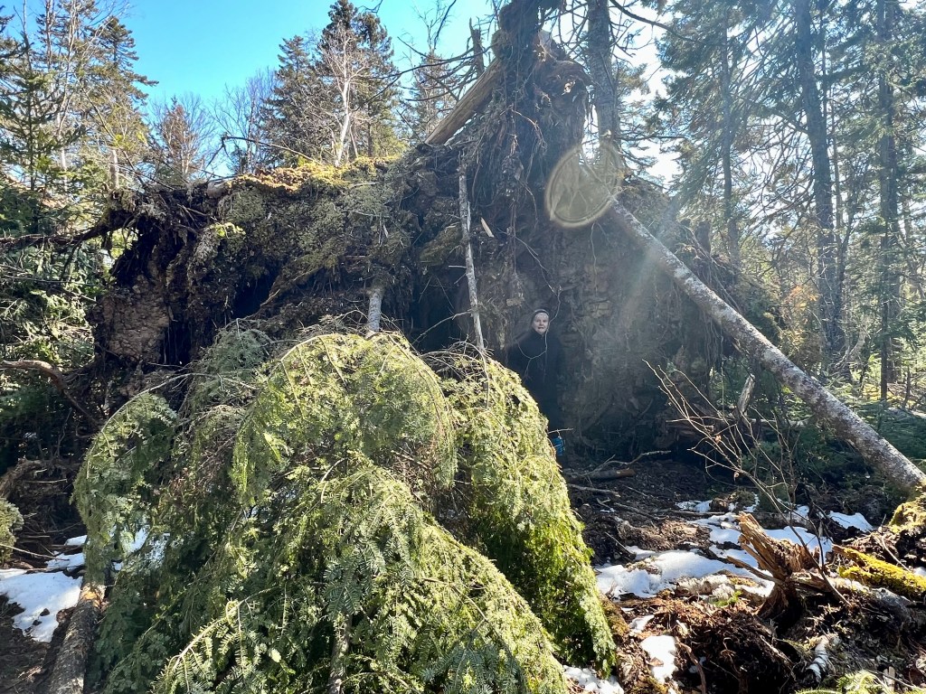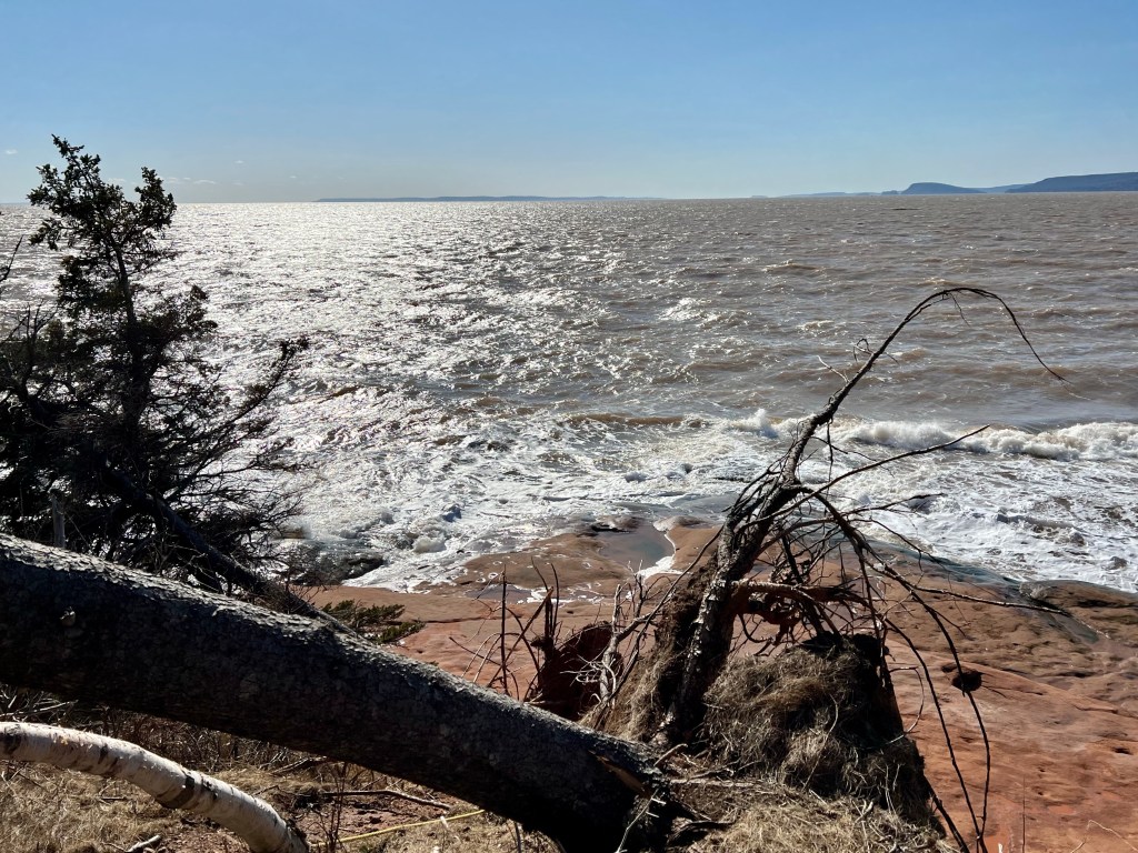 With time to spare we decided to tackle the Economy Trail Loop as well. We started out along the path overlooking the cliffs. Once we reached the rope (check Wednesday’s post here) we carried on along the cliffside trail. The views toward Economy and Five Islands Provincial Park are spectacular. Eventually, the loop leads back to the parking lot through the woods. Cushy sun-dappled moss and countless downed trees caused by Hurricane Fiona had us marvelling at nature’s force, both positive and humbling!