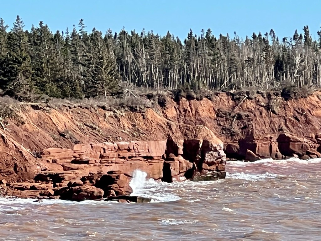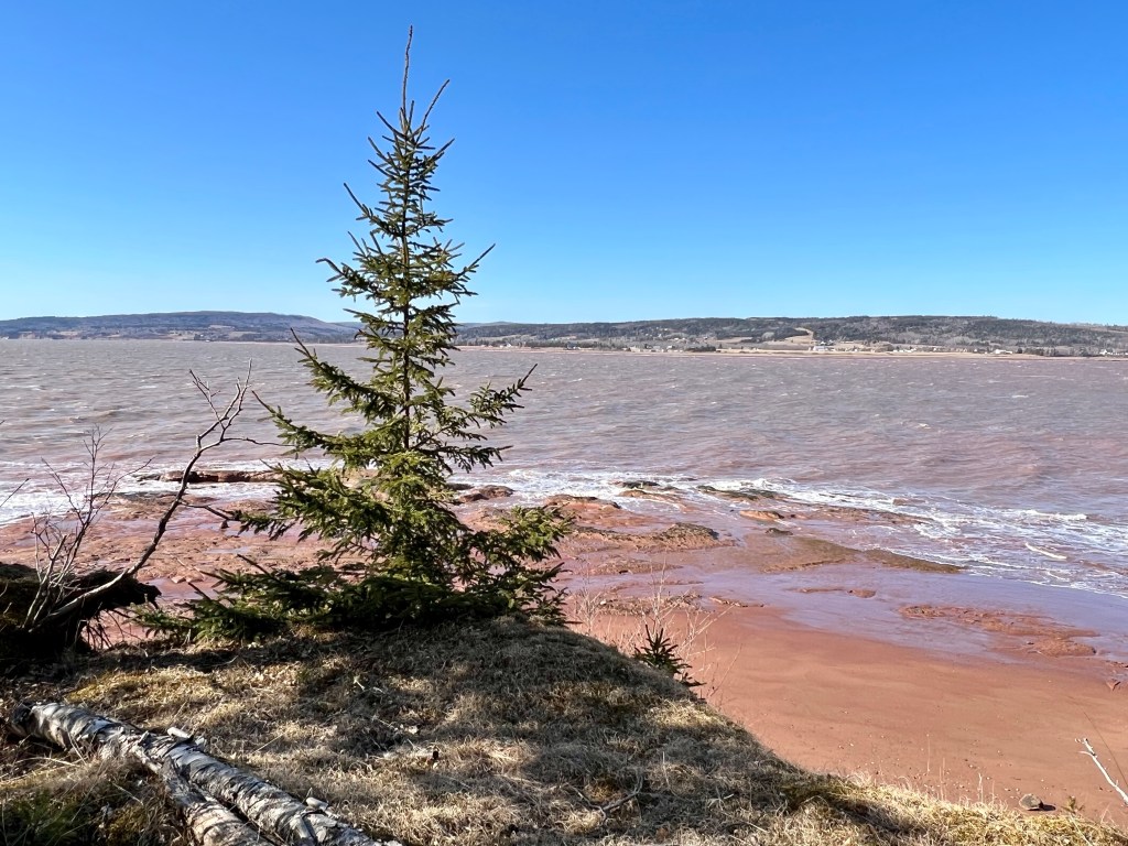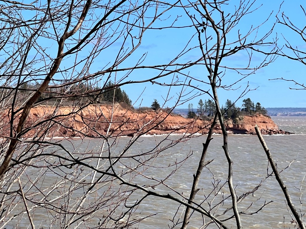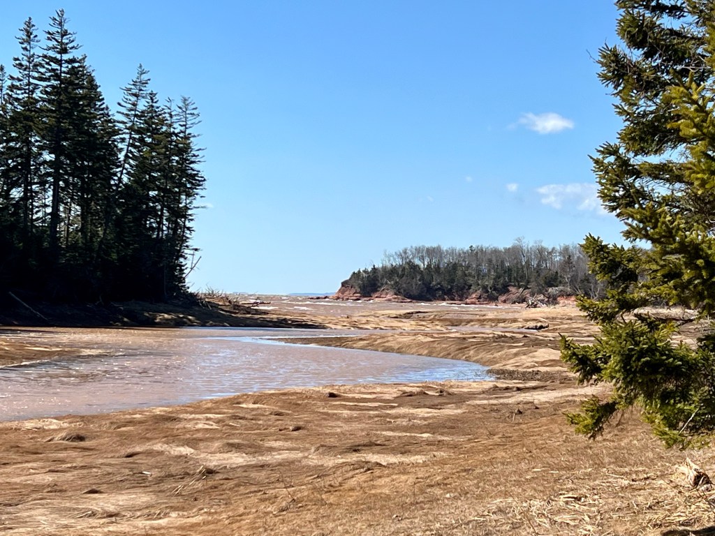 The tide was rolling in, the wind was strong and the sun illuminated the marshland, red cliffs and mossy woodland terrain.