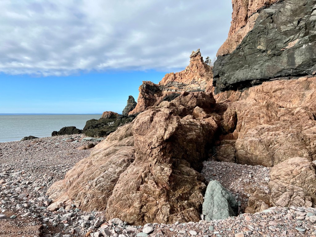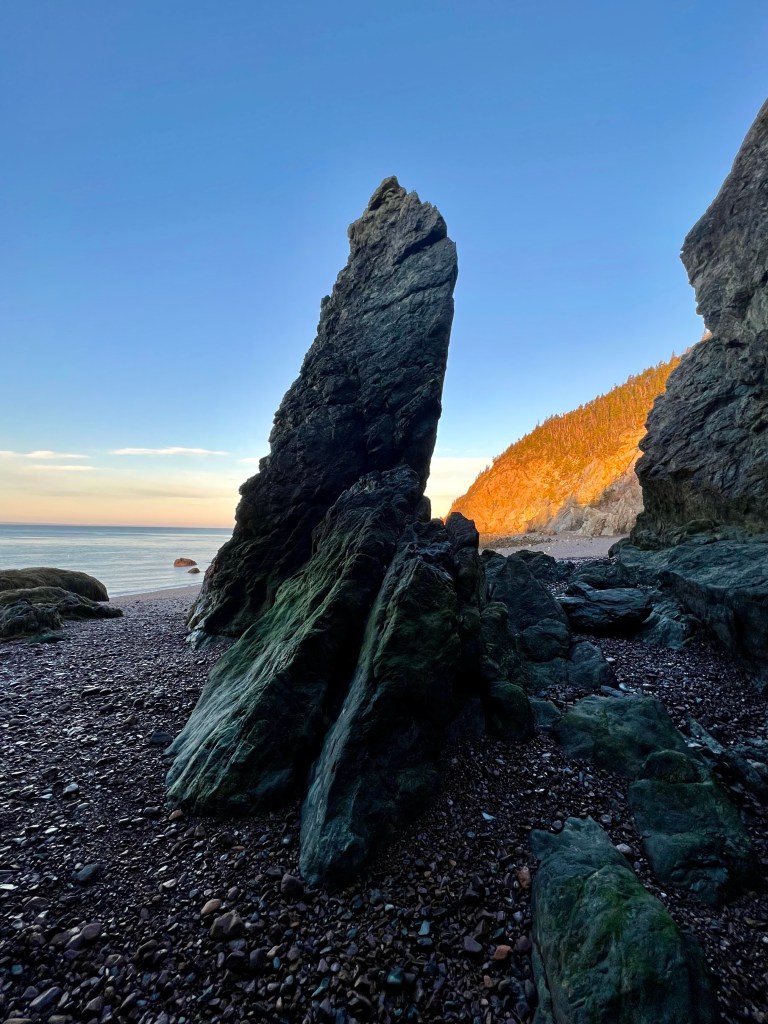 The Cape Chignecto area is easily one of the most impressive places I have ever visited and explored. “The Fang” was bathed in the most favourable light, water falls were dancing from great heights fanning out at beach level to quench our canine companion’s thirst, and the keyhole had doubled in size since last May. I was in a constant state of awe!