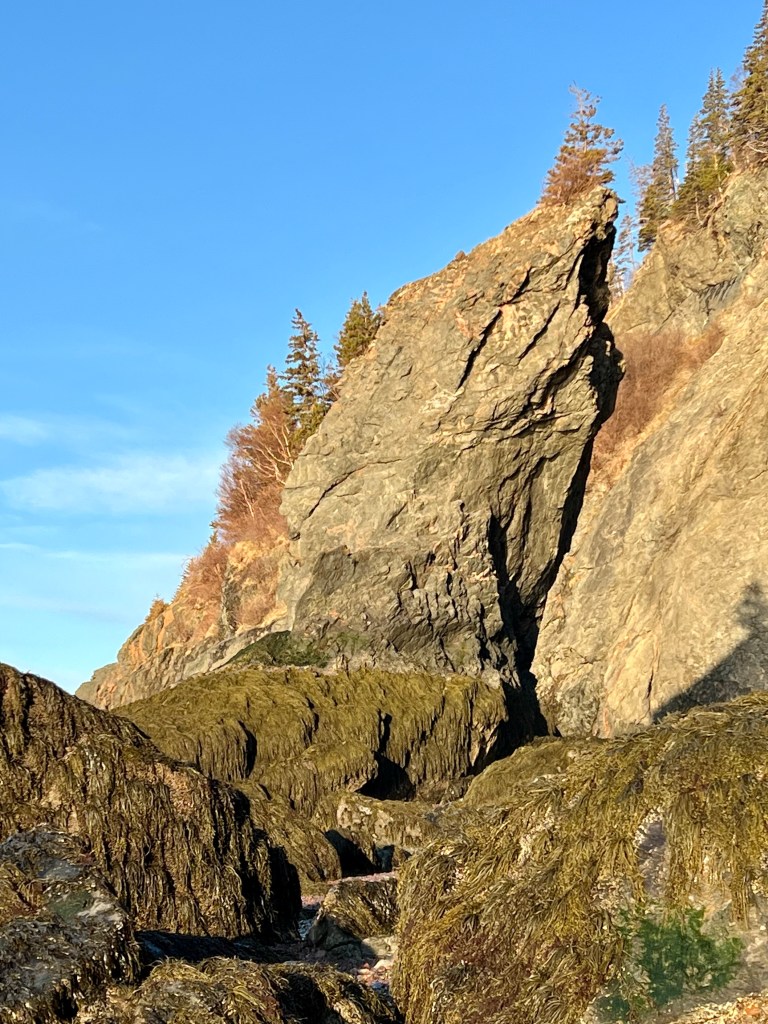 I came upon a new cave carved out by tidal action. The opening beckoned to enter, mysterious light illuminating it to the point where I expected another opening inside but there was nothing! The cave does not have a name… yet!
