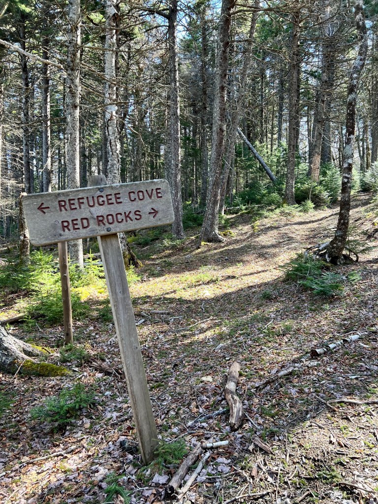 Our packs were on the heavier than normal side because we carried rubber boots, just in case…. Just in case the pinch points along the beach would not be cleared enough for dry passage. Well, suffice it to say: we didn’t need them😁. Yesterday was the lowest tide for the month at only about +30cm and we were willing to chance hiking to visit The Fang, Mermaid’s Cave, Old Sal and Refugee Cove.