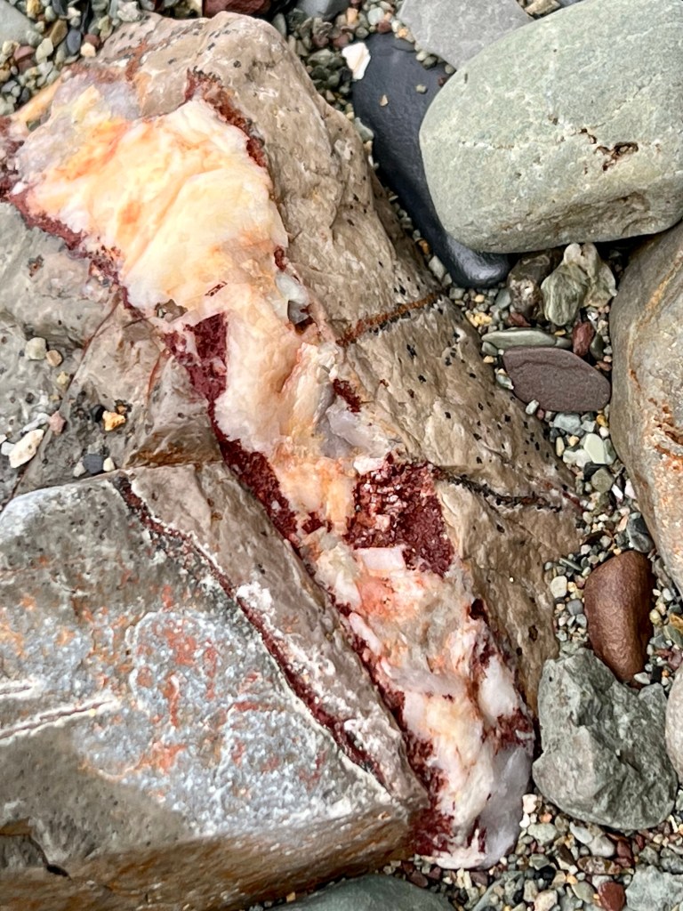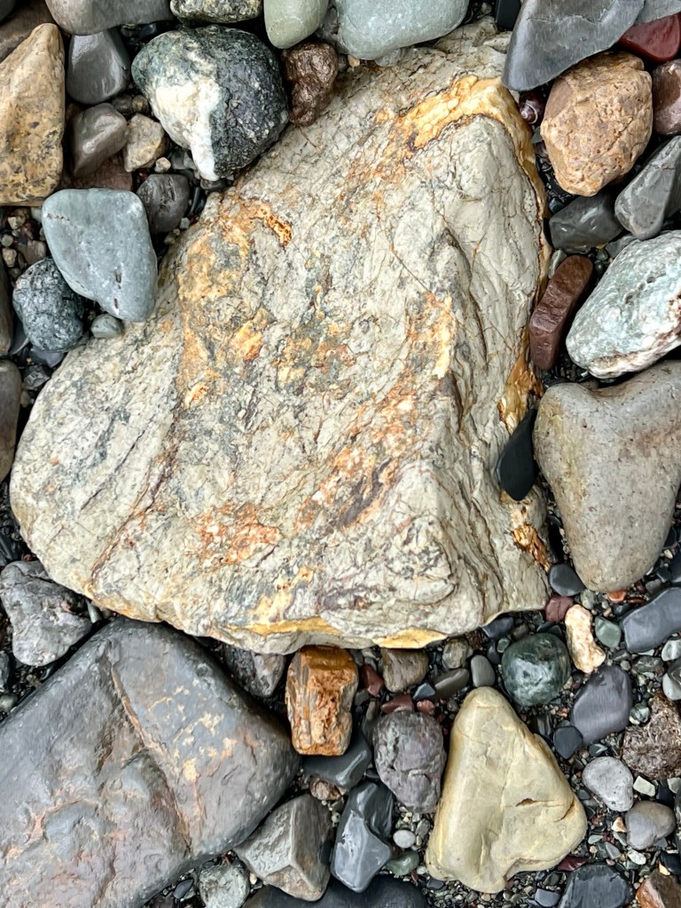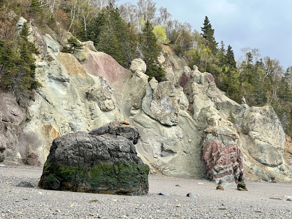 Just as we arrived at Clarke Head arch the clouds burst and we were doused with rain and hail. The moisture intensified the colours of the cliffs and beach rocks even more!