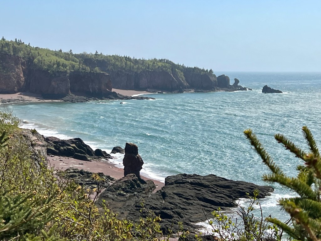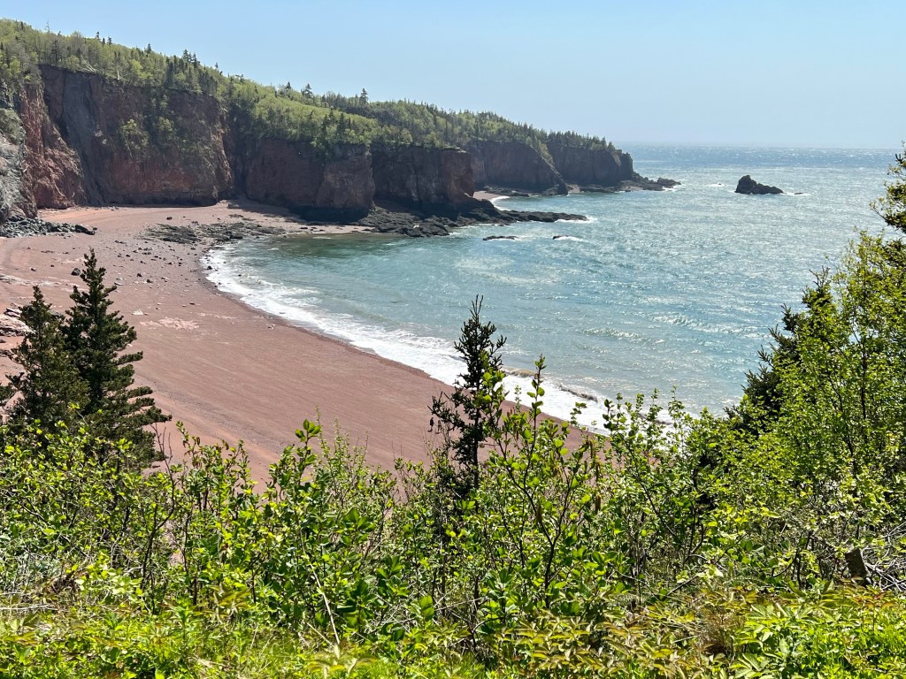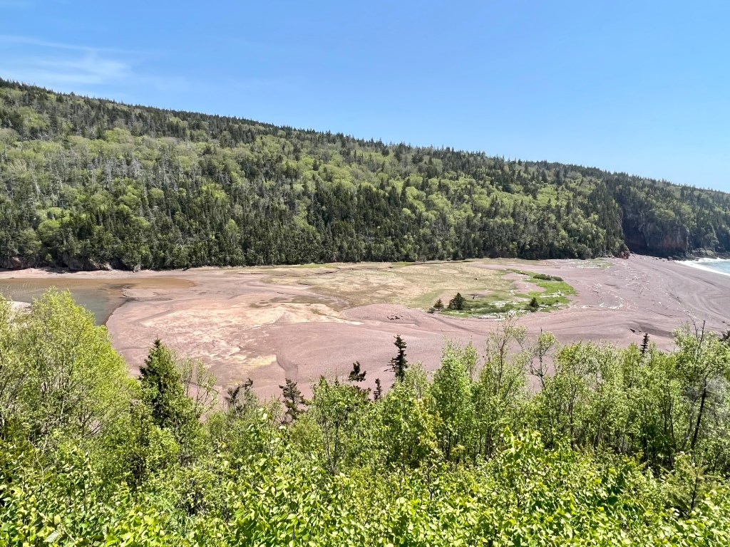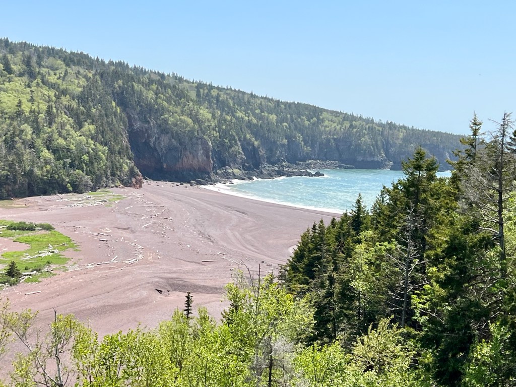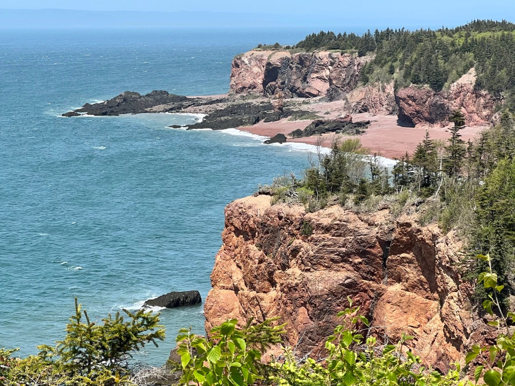 Squally Point look-off afforded us a fabulous view of the impressive rhyolite cliffs. We discovered beach access we plan to investigate when we have a full day to explore. We were certainly envious of the two people far below us enjoying the all-consuming wave action of the mighty Bay of Fundy.
