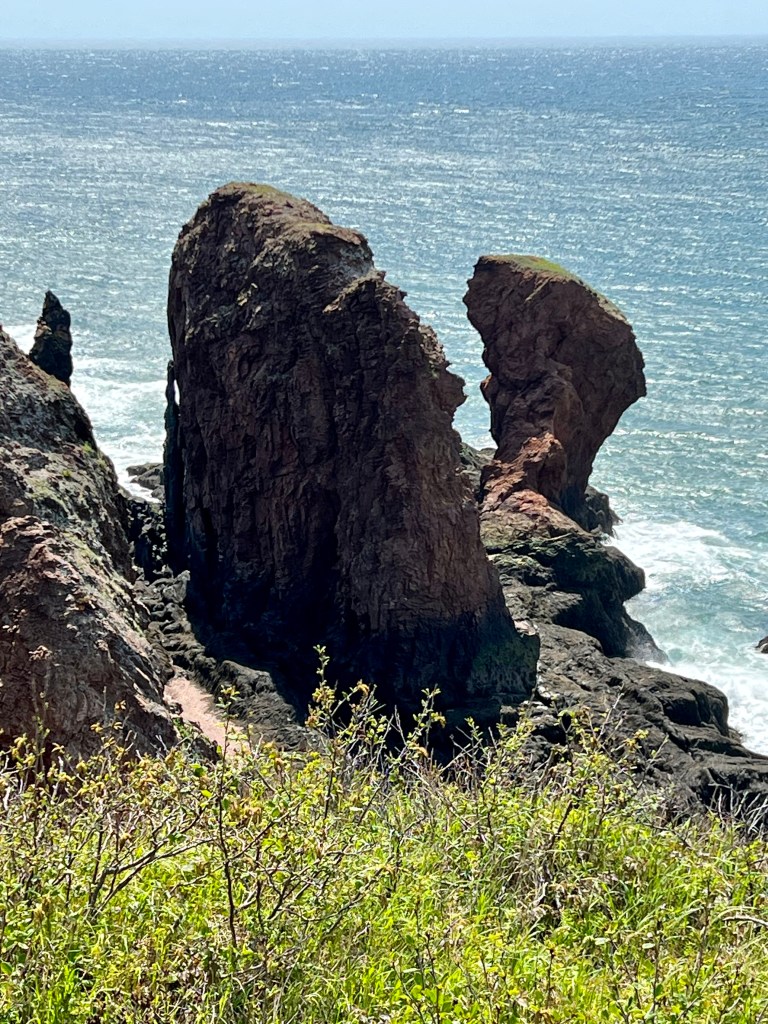 The evolution of pillar rock formations is the focus at the third look-off platform. It’s hard to believe that this pillar started as a rather large sea which morphed into a narrow arch when eventually that narrow arm collapsed and left this pillar. With each wind gust, each tide cycle and rain storm the pillar continues to erode and will eventually disintegrate to pebbles at the beach.