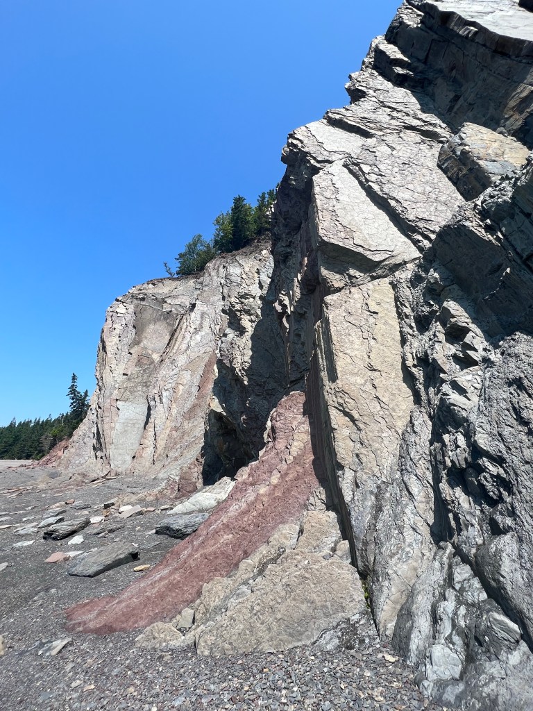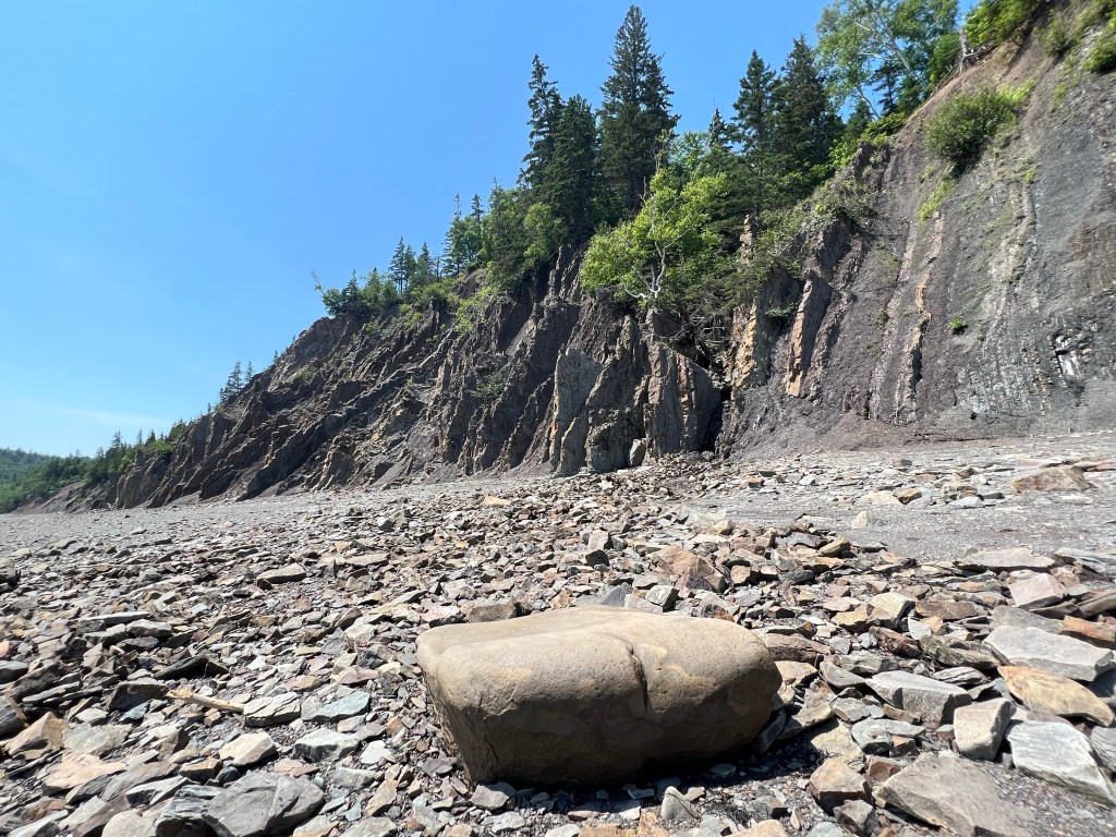 This beach is definite worthwhile exploring due to its impressive steeply tilted Carboniferous Mabou Group rocks topped by precariously balancing rocks of the Cumberland Group, a treasure trove for anyone with an interest in geology and the earth’s natural history.