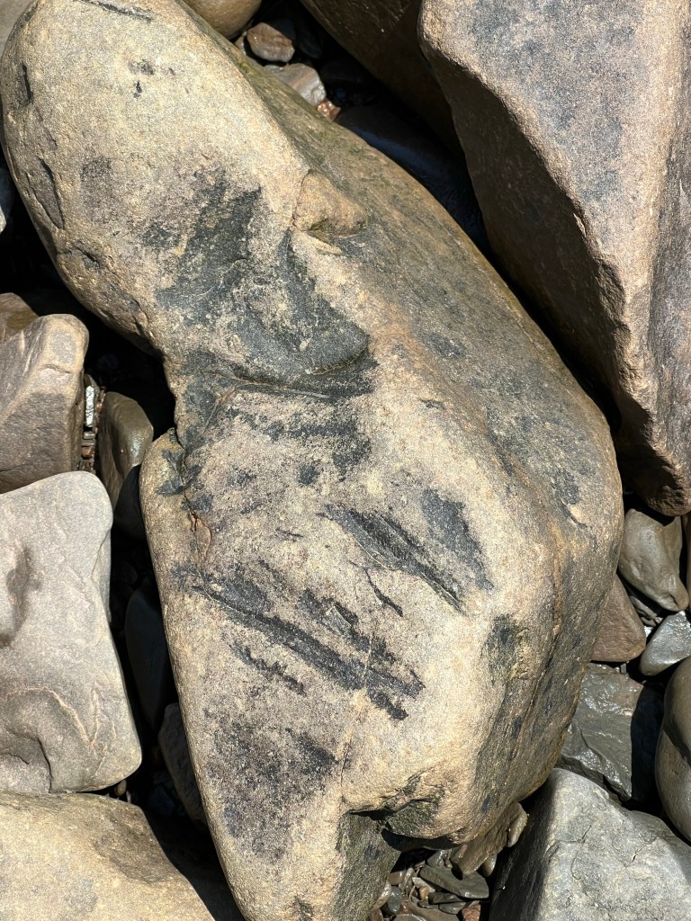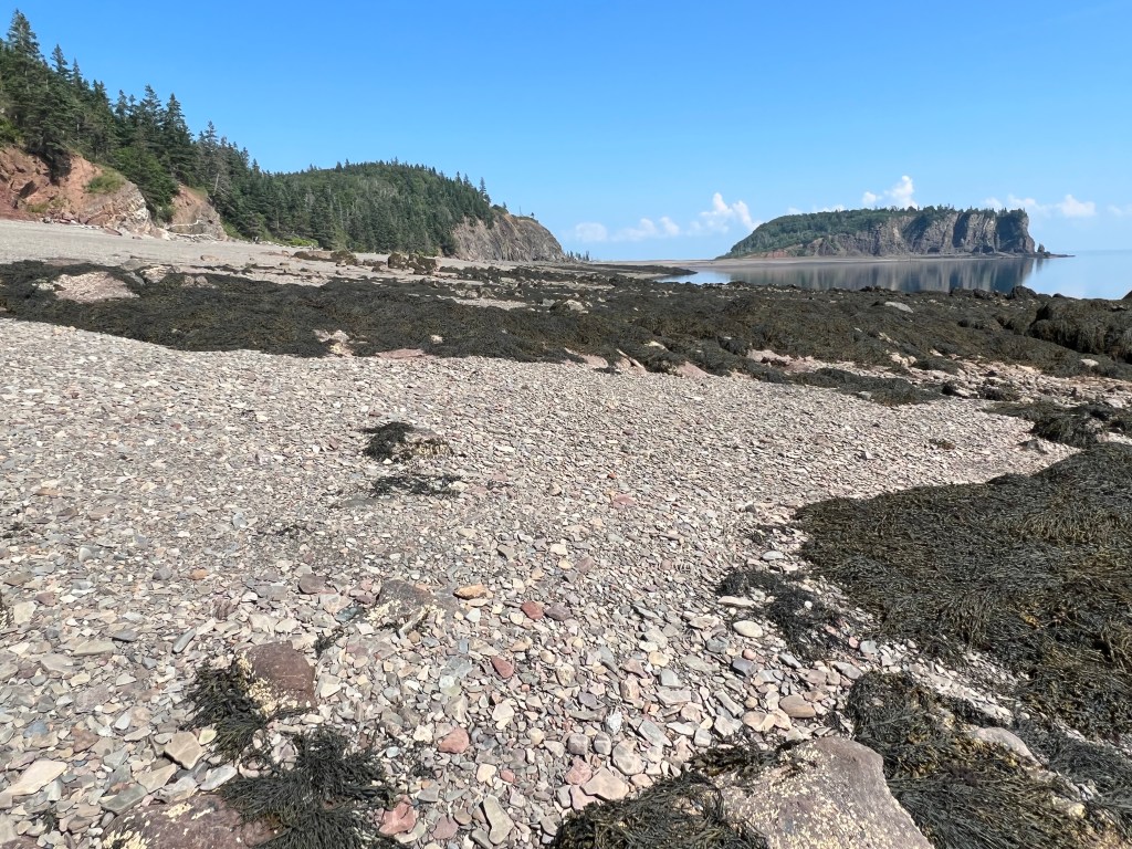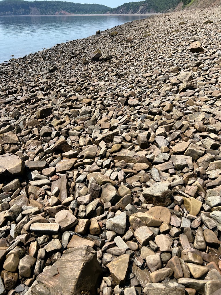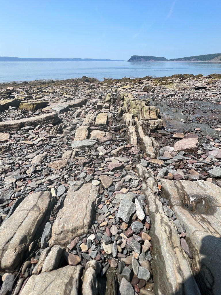 The rocky Bay of Fundy beaches are in constant flux! It’s difficult to imagine the tidal force able to move these large “pebbles” at speeds of up to 20 km/hour. With each high tide the beaches are rearranged, exposing new treasures and at the same time bury what was revealed a few short hours earlier.