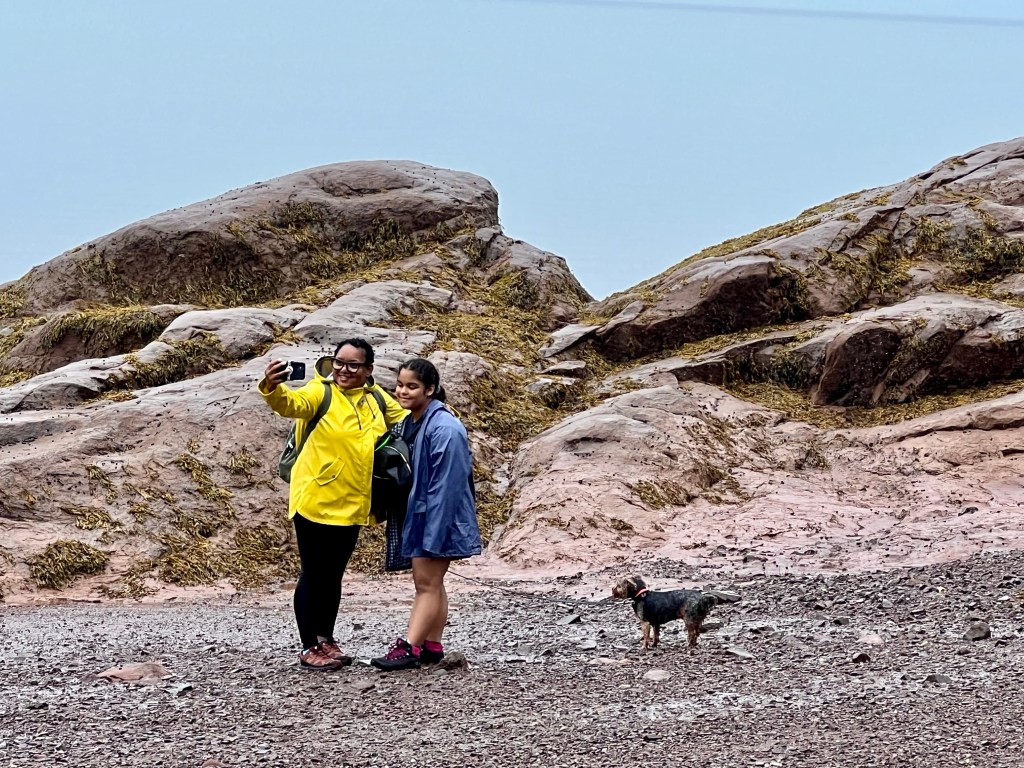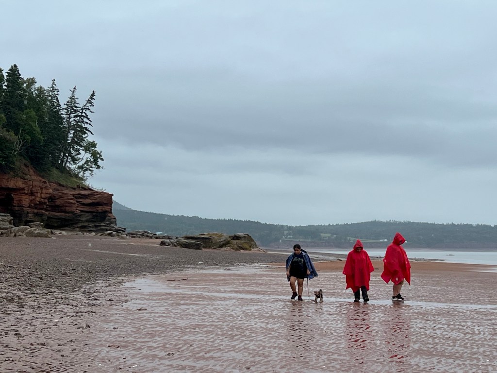 We are always grateful for the warm rain in Nova Scotia! There is no need to cancel a tour or excursion. No matter what, the ocean floor is already wet, right? A sense of adventure is always a plus and that the Wandering Wilsons brought with them! Thanks for the opportunity to show you around one of the many beaches along the Upper Bay of Fundy, Natalie, Dihlan, Nina, Dave and Honey. Till we meet again…