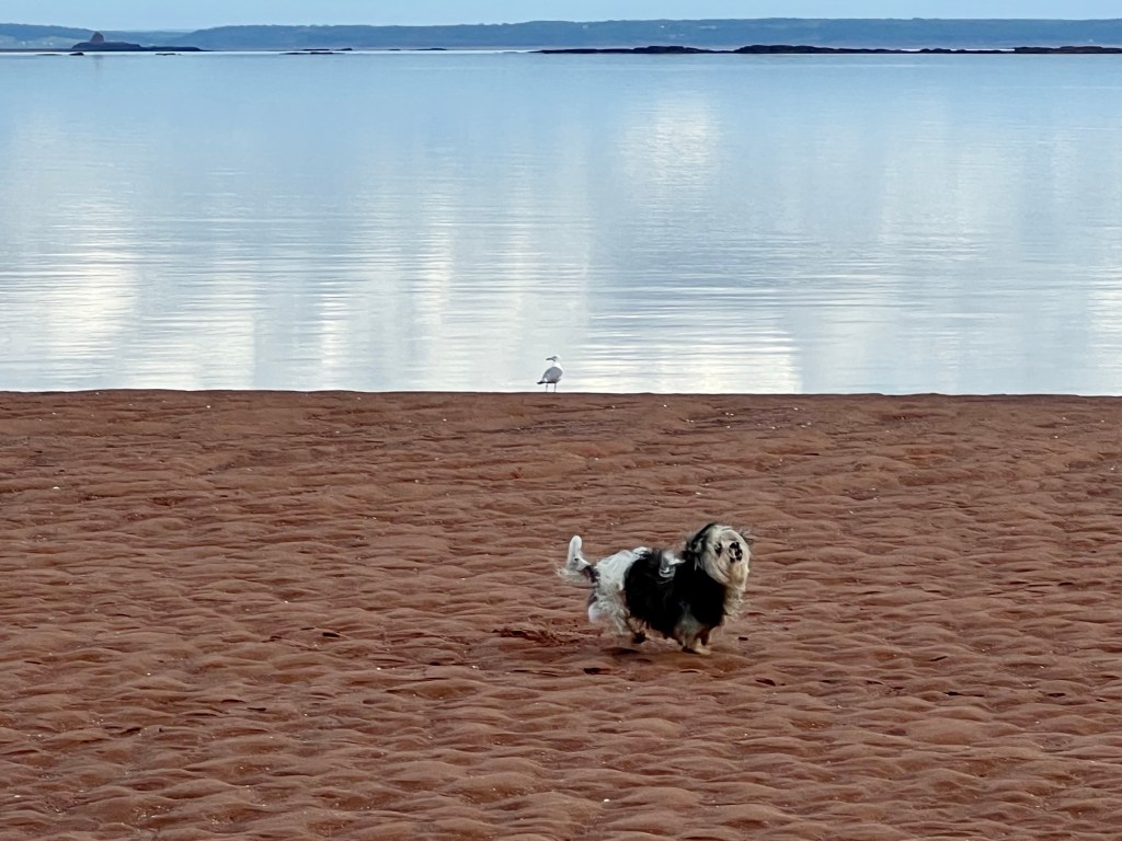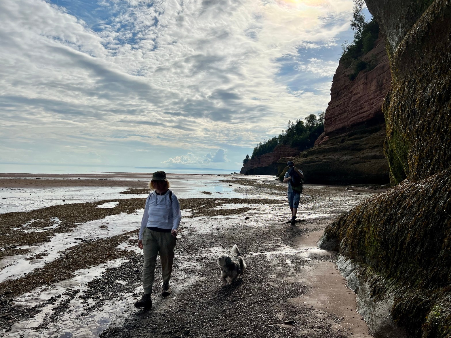 I never grow tired of wandering on the ocean floor at Soley Cove. I have conducted four separate tours there over the past seven days. After Sunday afternoon’s rainy experience today’s excursion topped all previous tours! We started our excursion two hours after high tide and were treated to stunning skies and ever-changing light. Tour participants hailed from Texas and Montreal today. And Gypsy the canine companion had the best time of her life!