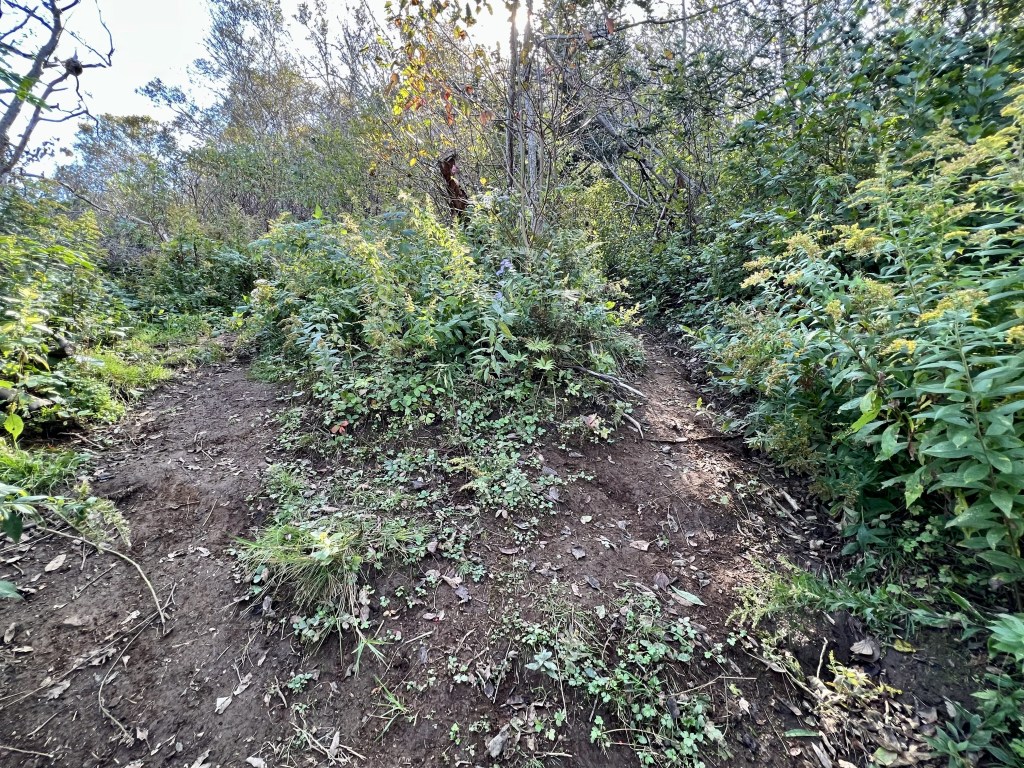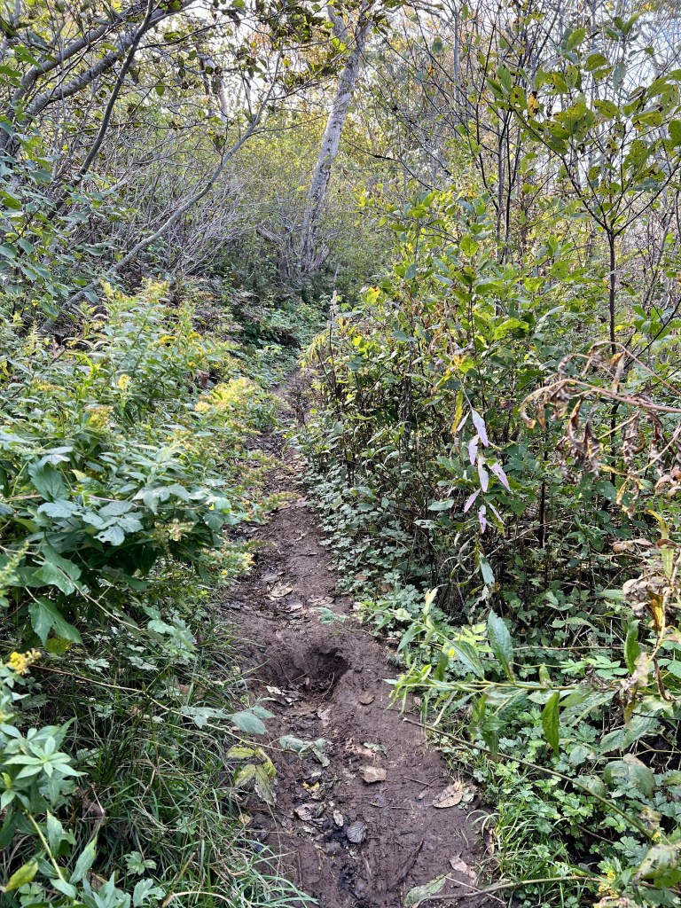 At the start of the trail the earth was wet and I had to watch my step after I suddenly slipped. Wet leaves are to be expected this time of year. Overall the first stretch of the path was well defined.