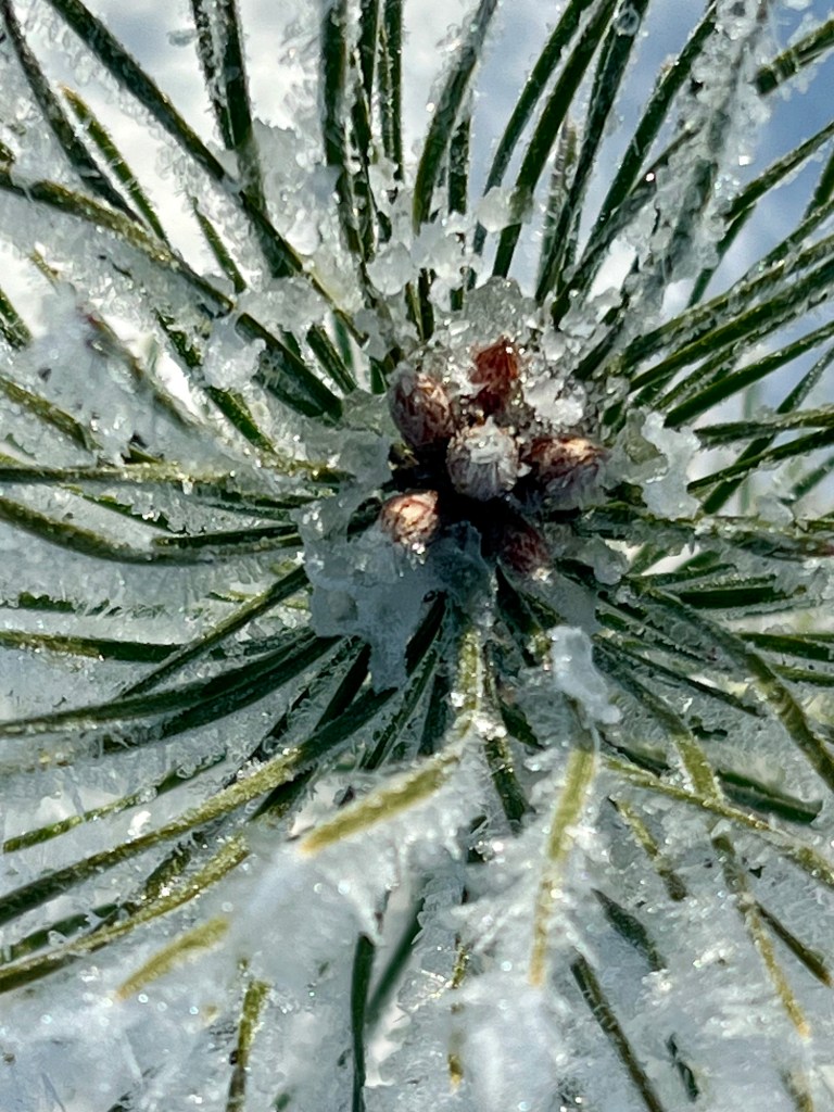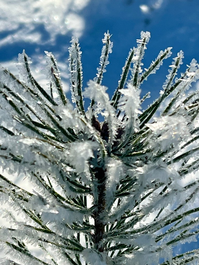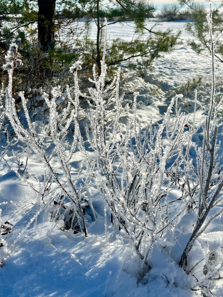 When the sun illuminates the frosty jewels covering weeds and evergreens the world sparkles!