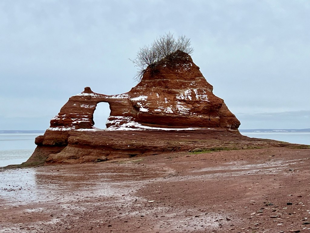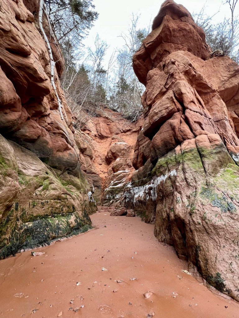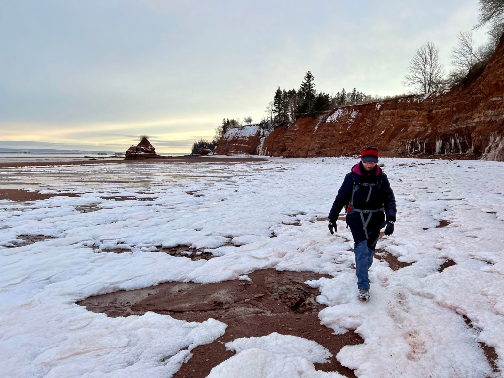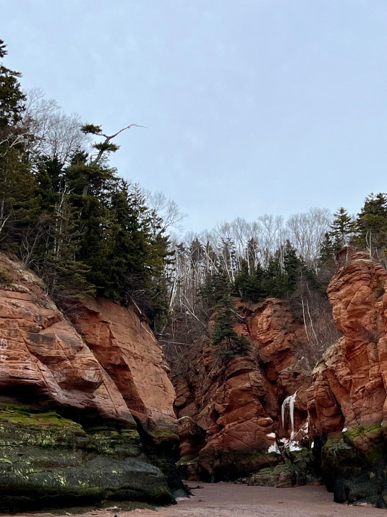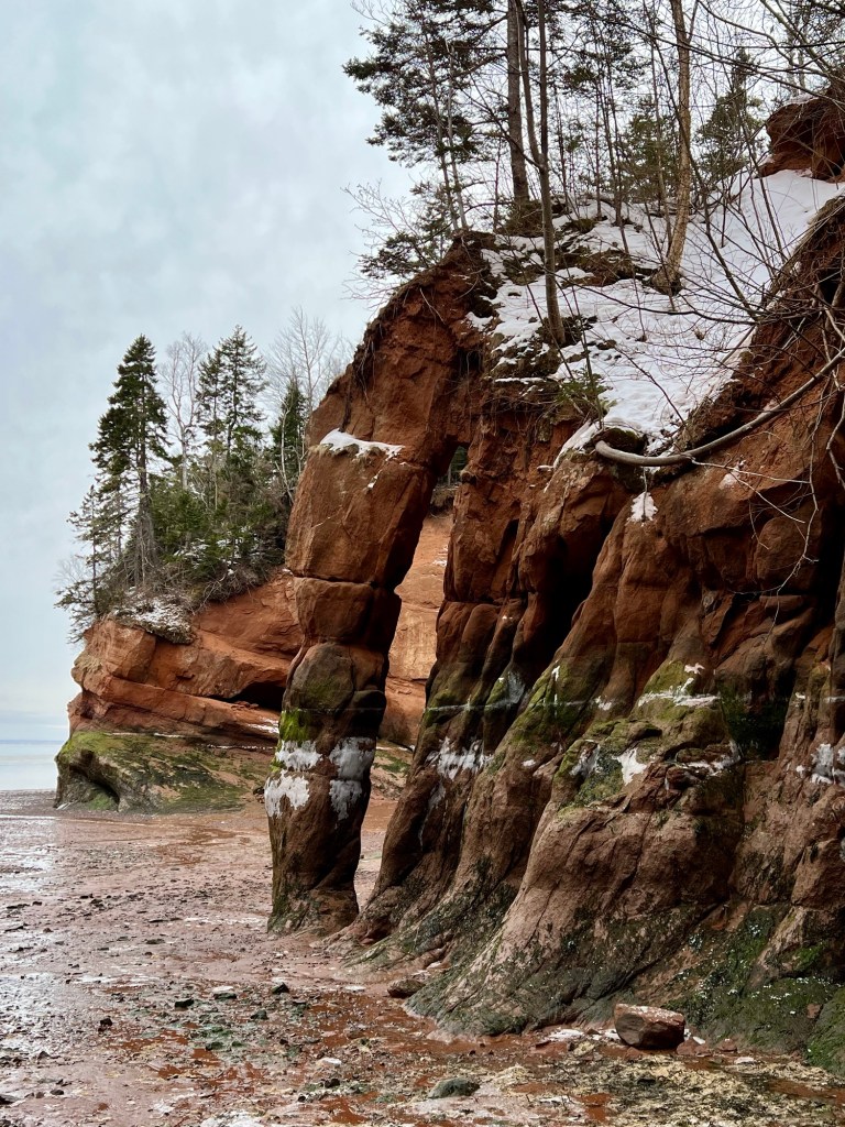 The sky was overcast and the diffused sunlight showcased the red sandstone cliffs to their best advantage. With long icicles contrasting the distinctive rust coloured cliffs shaped by water and wind this stretch of beach was perfect for a first time visitor.
