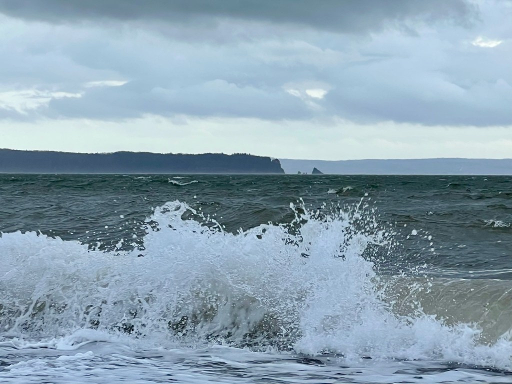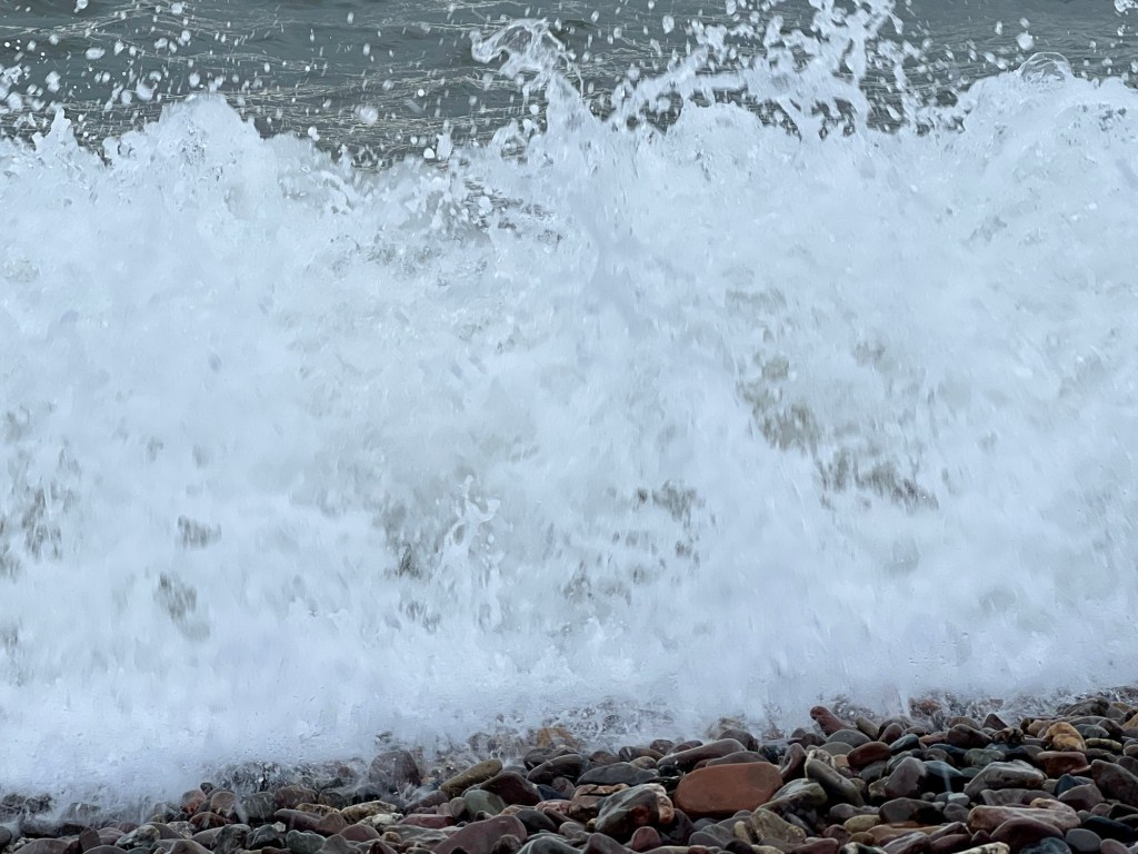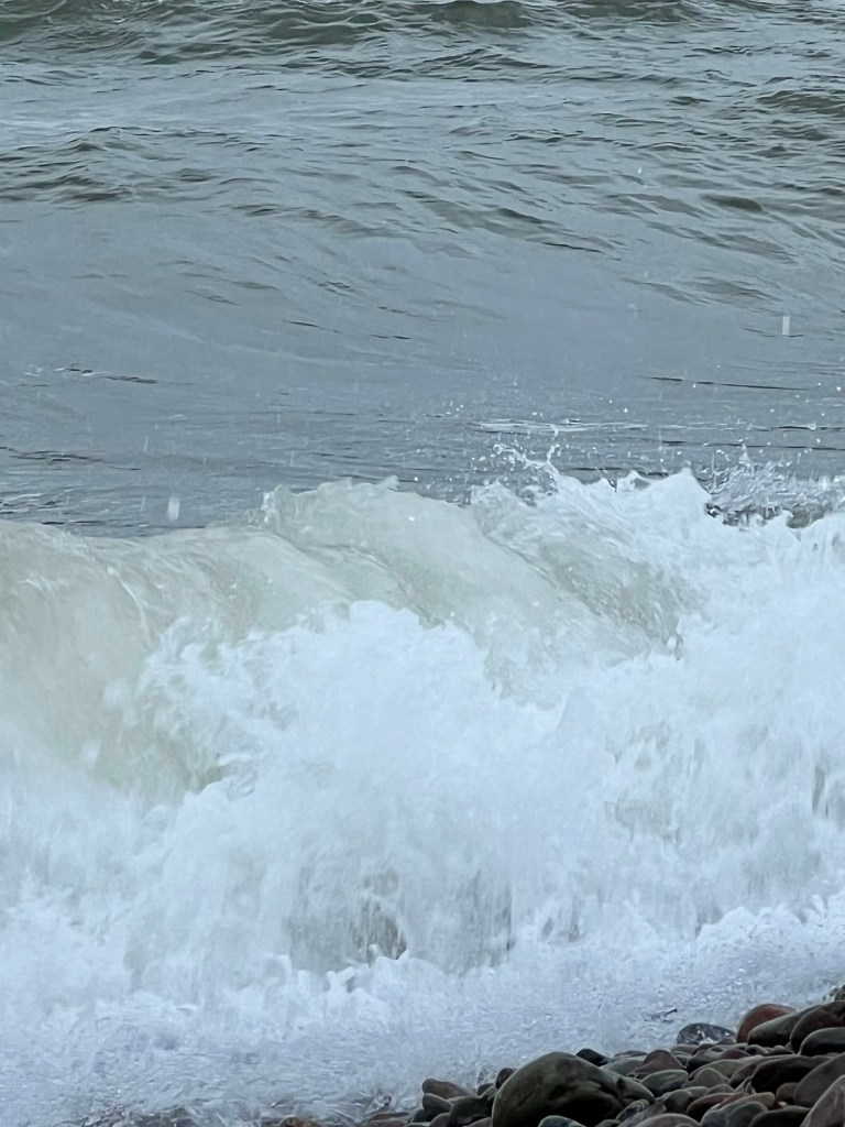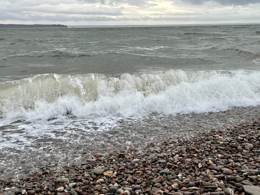 The tide was nearing its highest mark and the wave action was exhilarating.