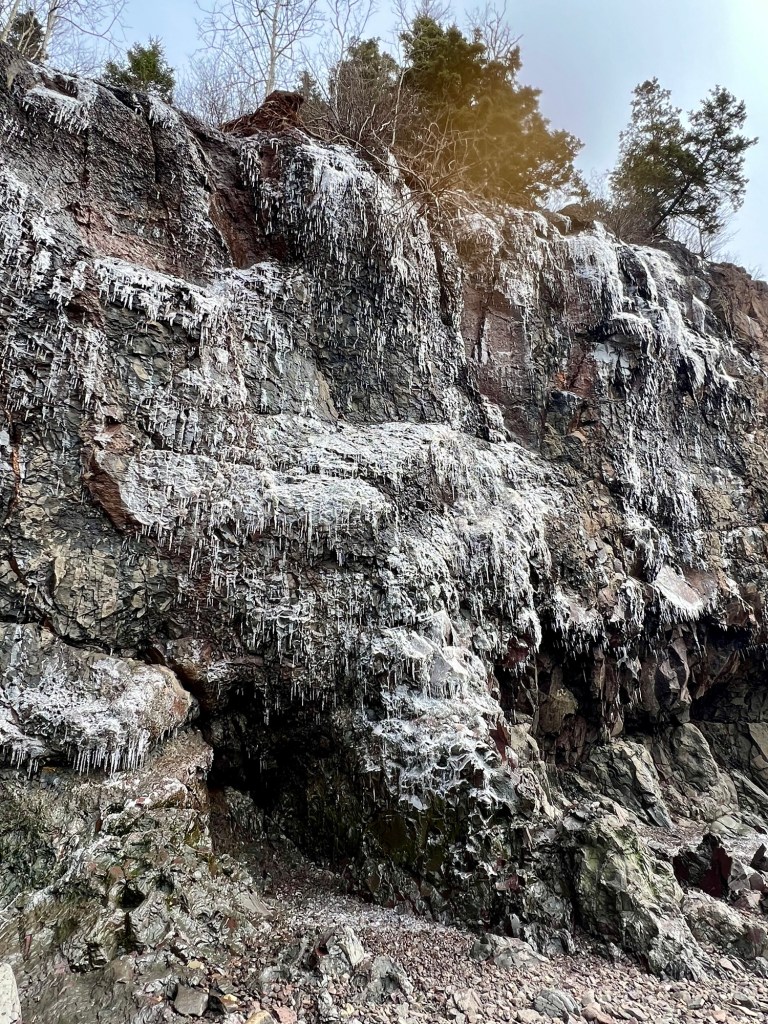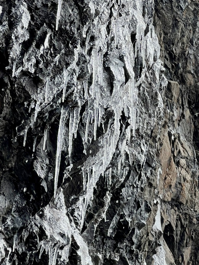 I managed to find some ice covering the mighty basalt cliff. Here is a video capturing the sounds of how it is melting: