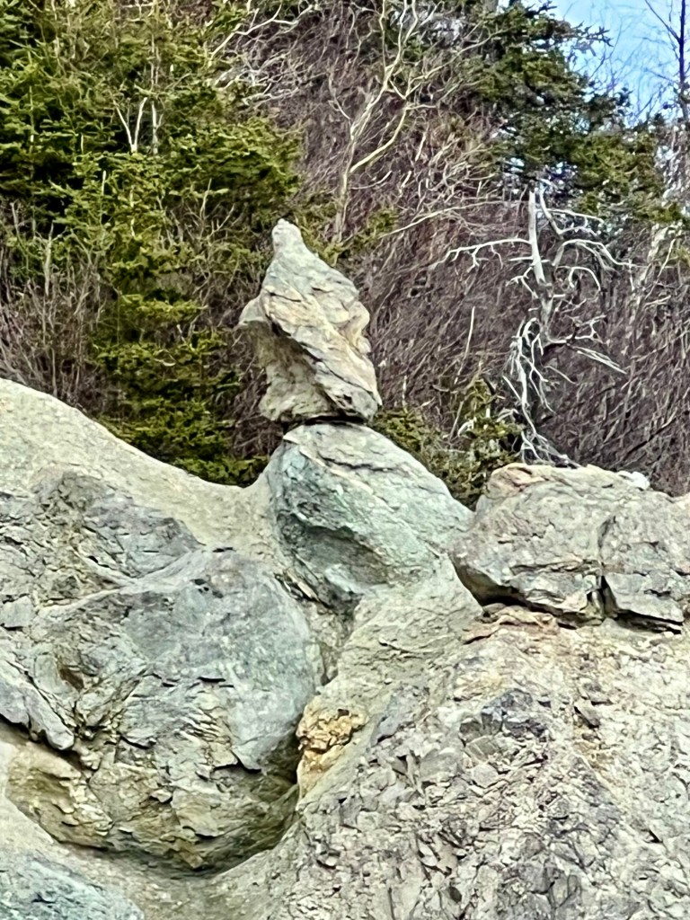 The day has been filled with typical April weather, sunshine and snow flurries, grey storm clouds and strong wind. Anne, Molly and I didn’t let the weather deter us from a brisk hike to Clarke Head. Thanks for joining me!
