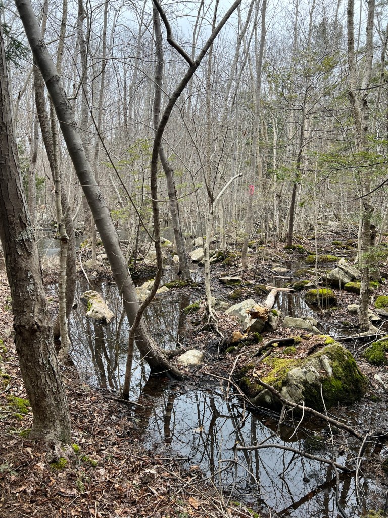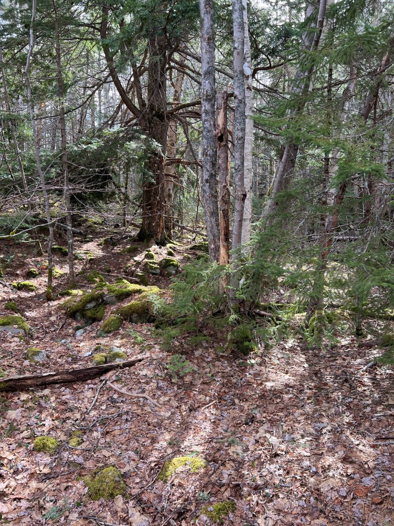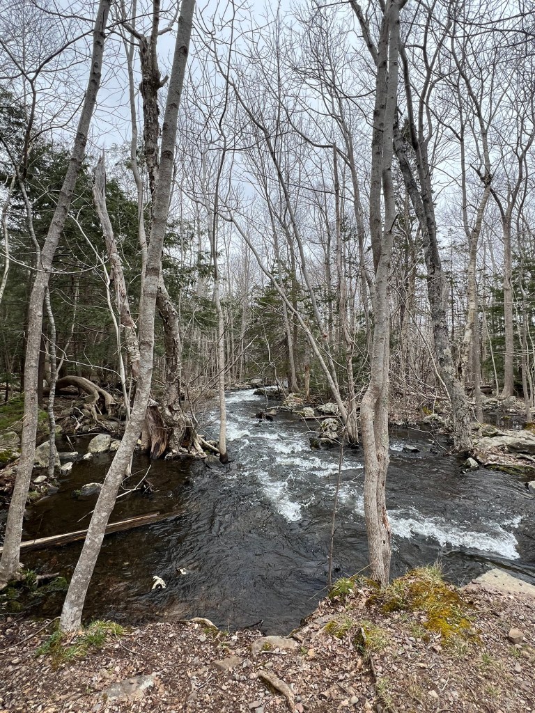 A month ago I participated in the Wilderness First Aid course at the Search and Rescue Centre near Waverly. The Advanced module was rescheduled for today. I decided to make my way there yesterday afternoon to avoid an early morning commute. When I arrived I was told that there would not be a class after all. Hmmm, I was hugely disappointed but proceeded to follow my original plan and explore the woods for some exercise. Down the steep hill I went and it was definitely worth it! The log used to cross the fast flowing creek just a month ago was just decoration: the path was dry and the creek bed easy to navigate!