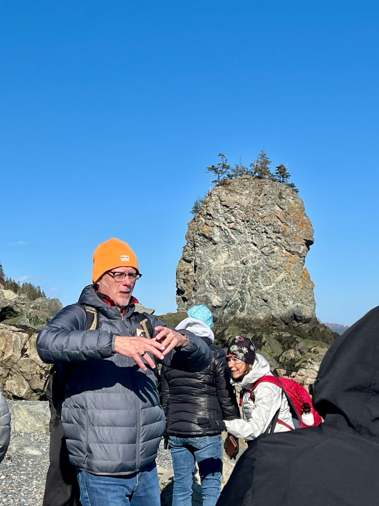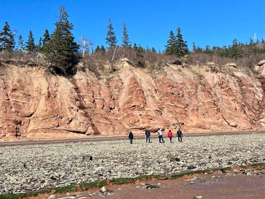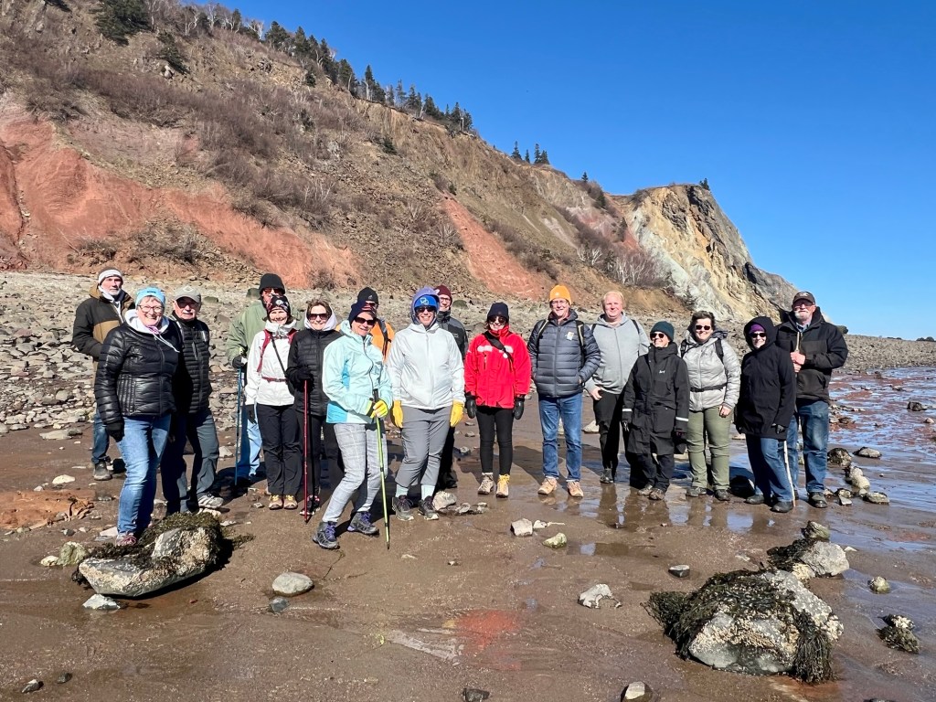 We had a fabulous turn out for the Earth Day hike to Clarke Head. A heartfelt thank you to Dr. John Calder for sharing his in-depth knowledge of the area and to geoscientist Louise Leslie from GeoLearn for providing answers to on-the-spot questions along the way. This was the first joint interpretive walk between the Cliffs of Fundy Geopark and Tide Rollers & Mudlarkers (ParrsboroShoreTours.ca) and judging by its popularity it won’t be the last!