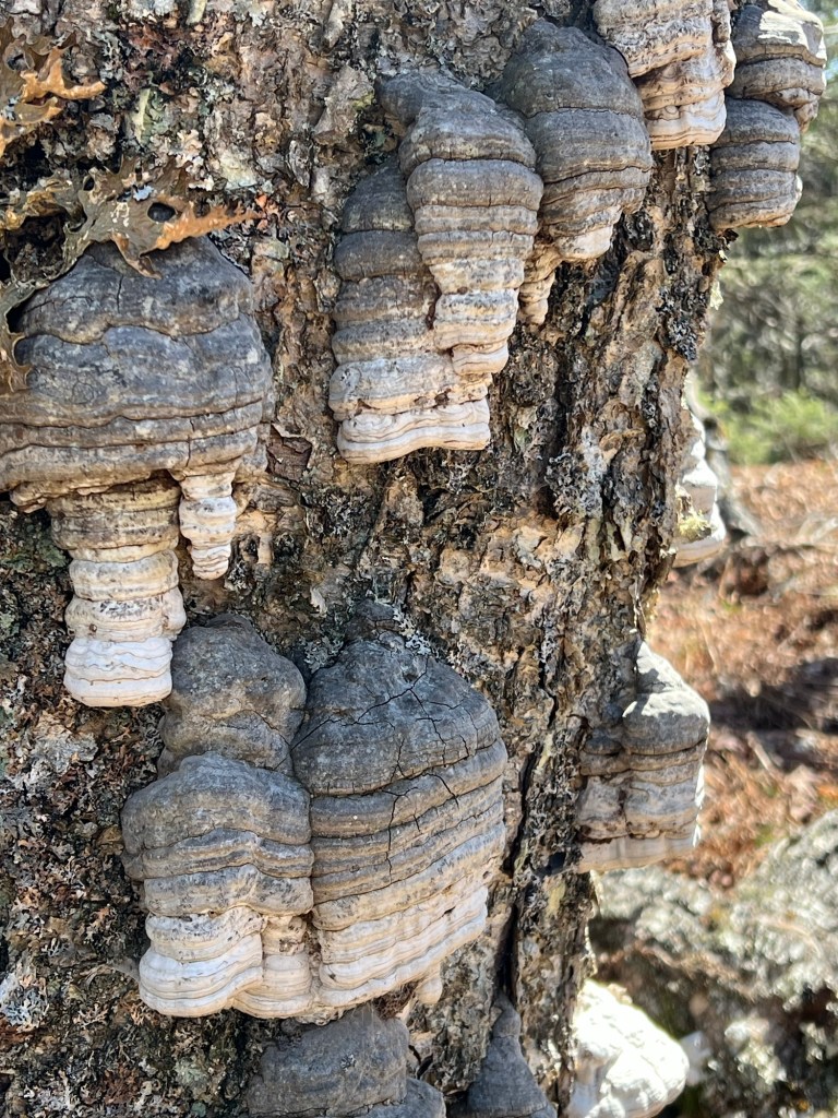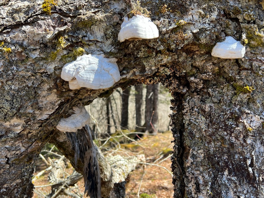 While hiking the Cape Chignecto Costal Trail last month I was struck by the variety of shelf fungi adorning the trees. Here is a small selection of various collections along the trail.