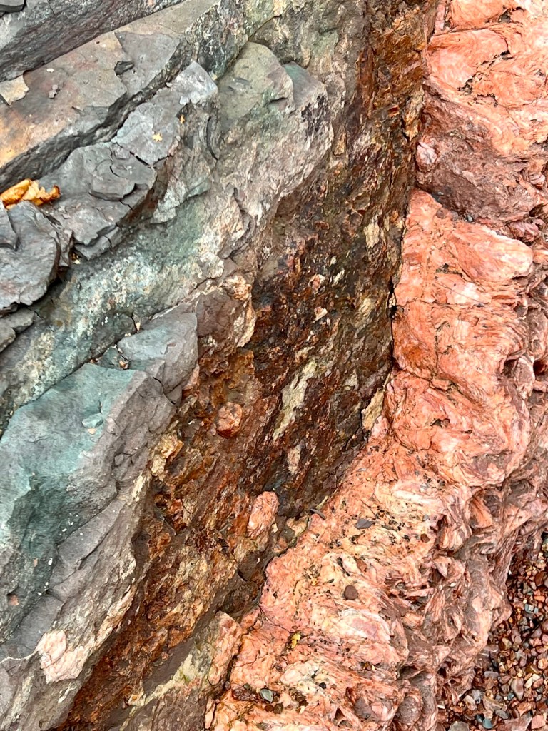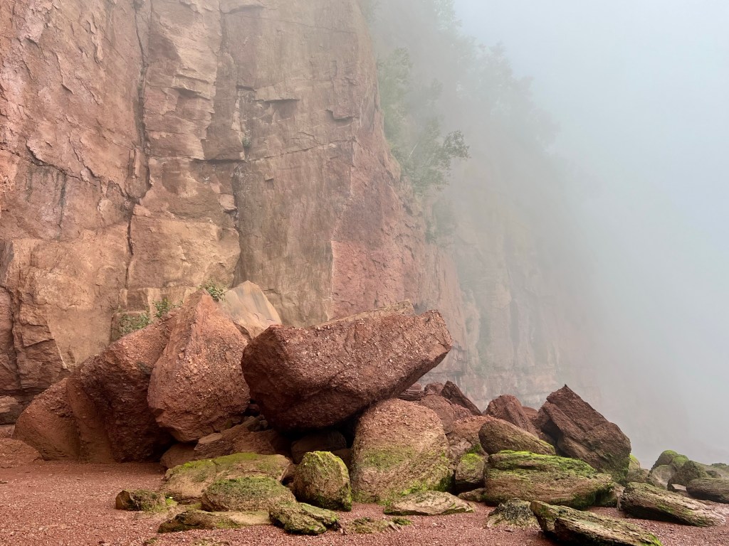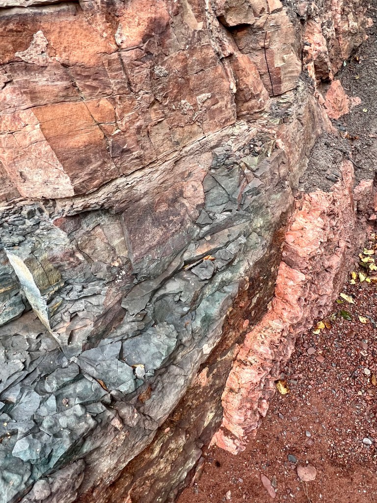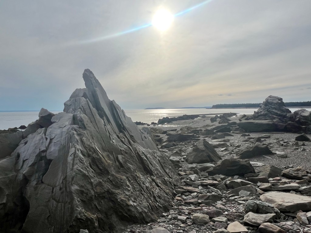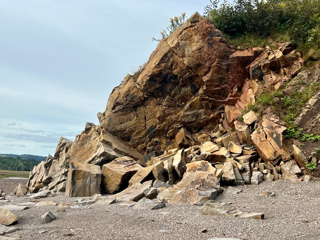 There, before me the Old Wife Formation spread out larger than life. I had only seen the formation in images, one of them on the cover of the first edition of the Cliffs of Fundy Geopark Sites publication. I had spotted it from a view point next to the Old Wife Rock but never did I have a full on view of this key geological site.