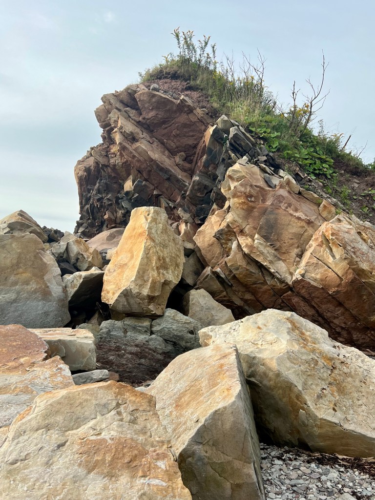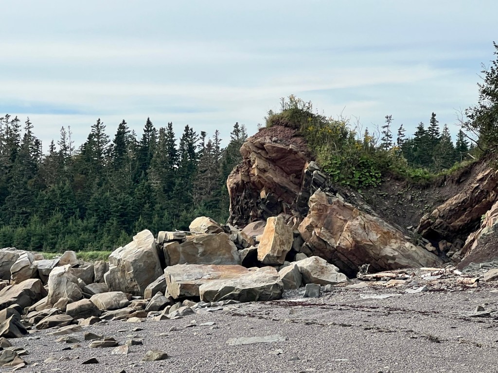 It had been a while since my last visit. I could barely believe how much erosion had taken place since earlier this spring. Once again whole cliffs had crumbled and I wonder how the predicted storm surge this weekend will impact this and all the other beaches in the Bay of Fundy.