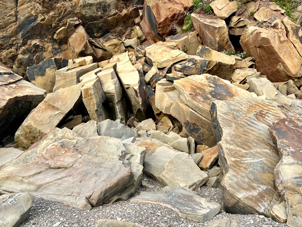 Instead I turned back and took another close up look at the rockfall along the beach. The huge rock piles reminded me of tumbling blocks knocked over by a giant!