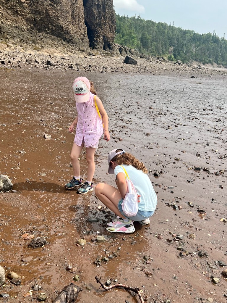 As “they” say: a picture is worth a thousand words. We spent a productive four hours looking for beach treasures along Wasson’s Bluff and Two Island beaches. We found sea glass, mermaid tears, moon snail shells, agate, quartz, smooth pebbles and colourful rocks! We shared snacks, watched hermit crabs, identified the gender of invasive green crabs and lived every minute of it!