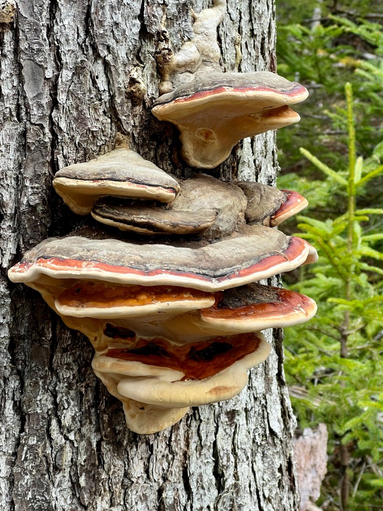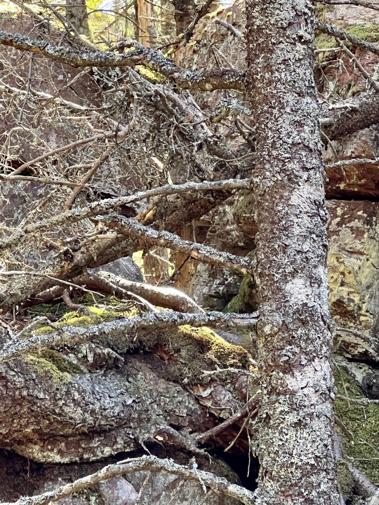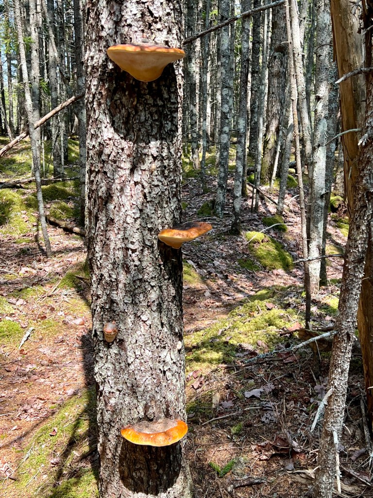 …clumps of moss, weathered driftwood, shelf fungi, newly emerged plants and a spiral lichen! Nature presents her gifts! Enjoy your Saturday. Best wishes, Anna