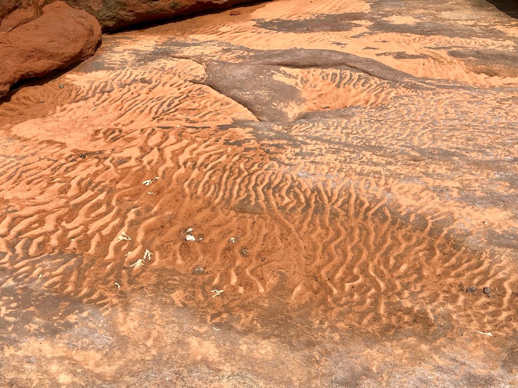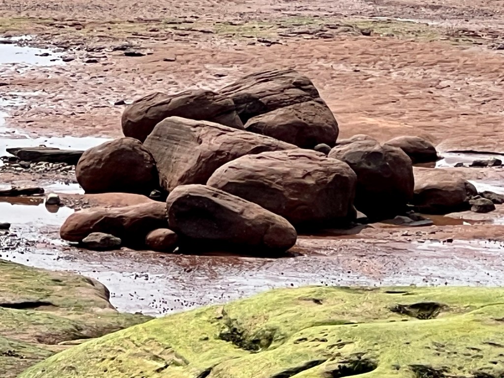 We used the rope to access the sandstone without incident. I had lost my footing last time I tried this and the colour of my clothes was instantly changed to blend in with the sandstone cliffs😜. Yesterday we enjoyed the full width of the sandstone shelf.