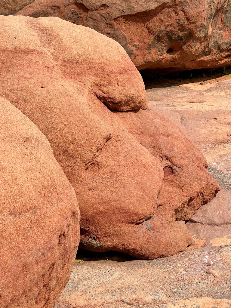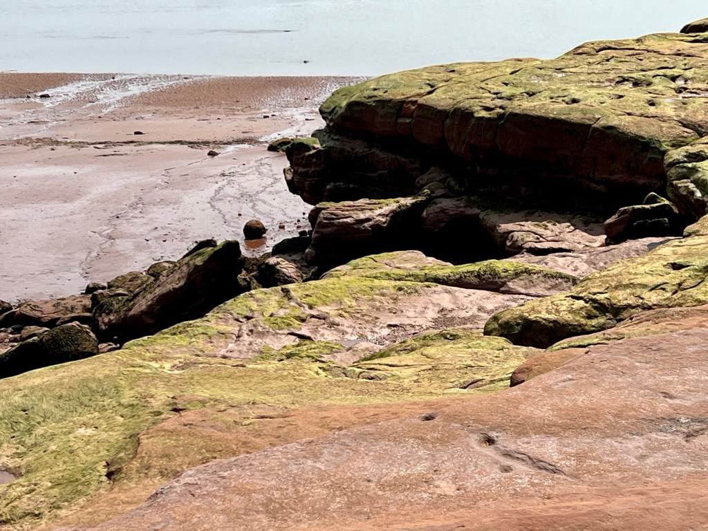 I always love exploring this beach. The first time I came was early April 2021. I was fascinated by the cliffs, rock formations, seaweed covered boulders and the unique colouring of the rock faces. Shortly after my first visit I found out that Andy Goldsworthy had visited and worked on this particular beach several years ago. Andy Goldsworthy is an internationally respected and well-known sculptor, photographer and artist. If you don’t know of him, google his name. I promise you: You will not be disappointed!