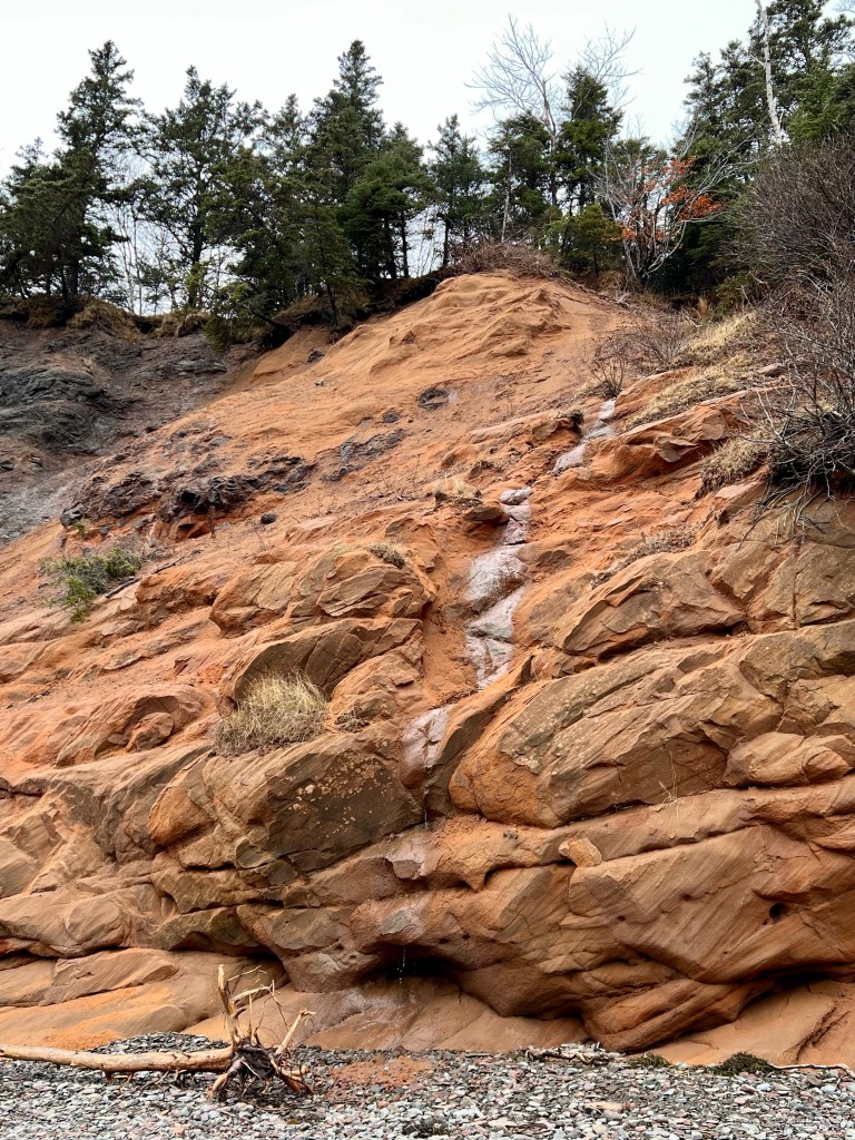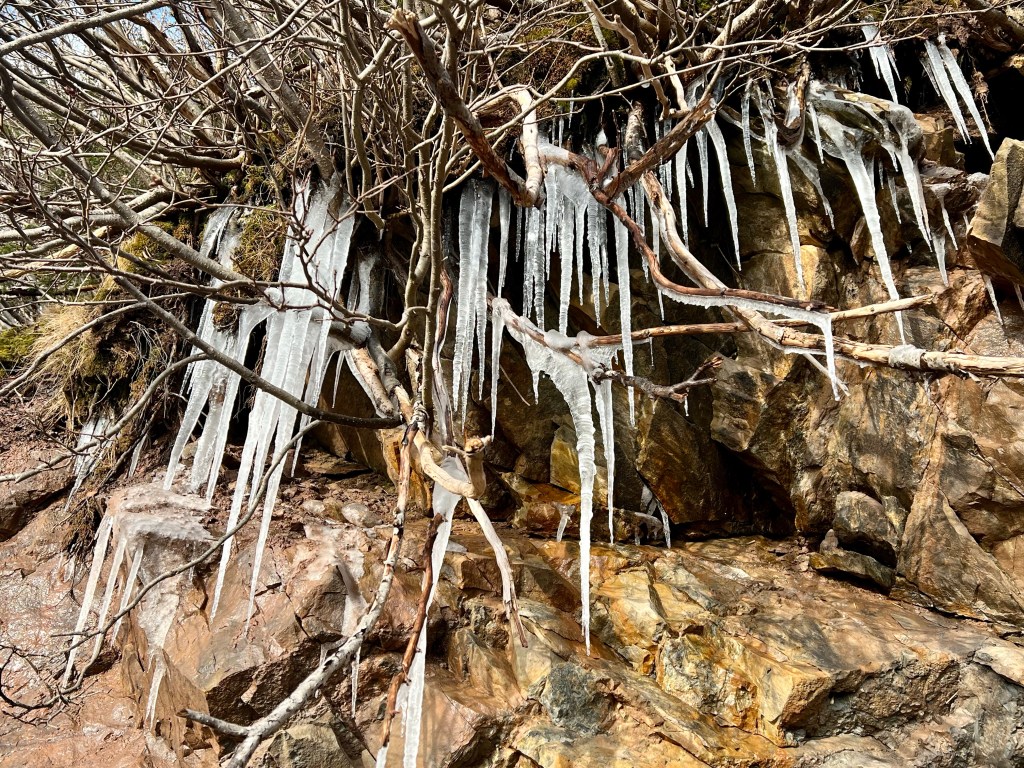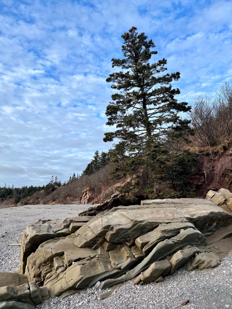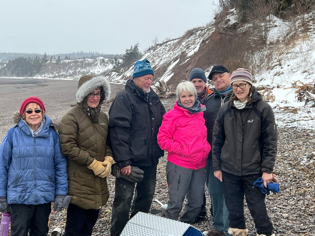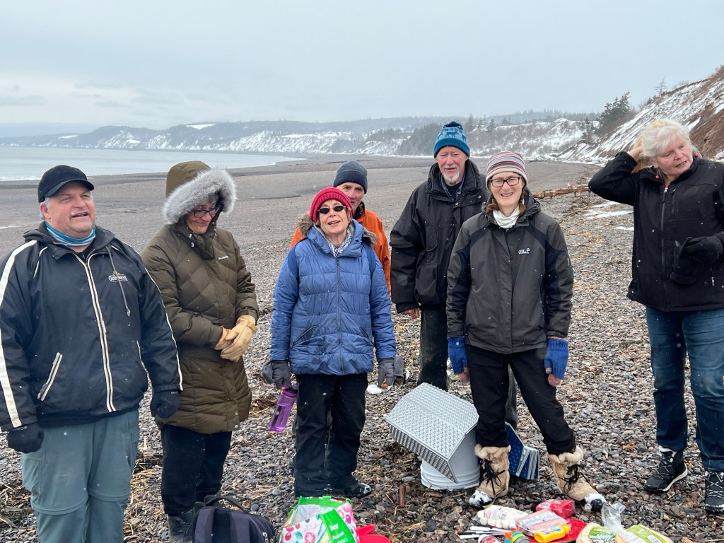 Hike Insights: keep in mind that this was an ideal winter hike with little snow and no ice anywhere at a temperature around 0 Celsius. The distance was just over 10 km return. Most challenging were the approaches to Horseshoe Cove Beach and the rocky natural road from the gate down to Cape d’Or. We were fortunate that there was no snow or ice cover.