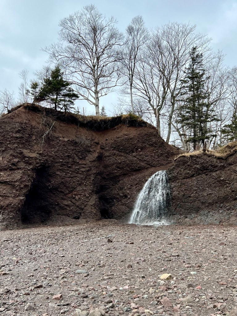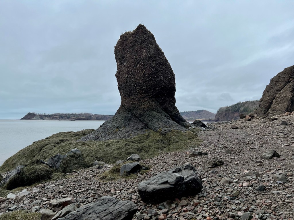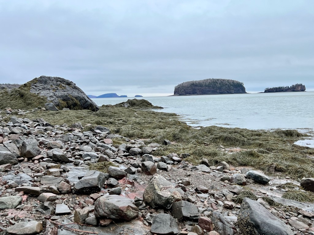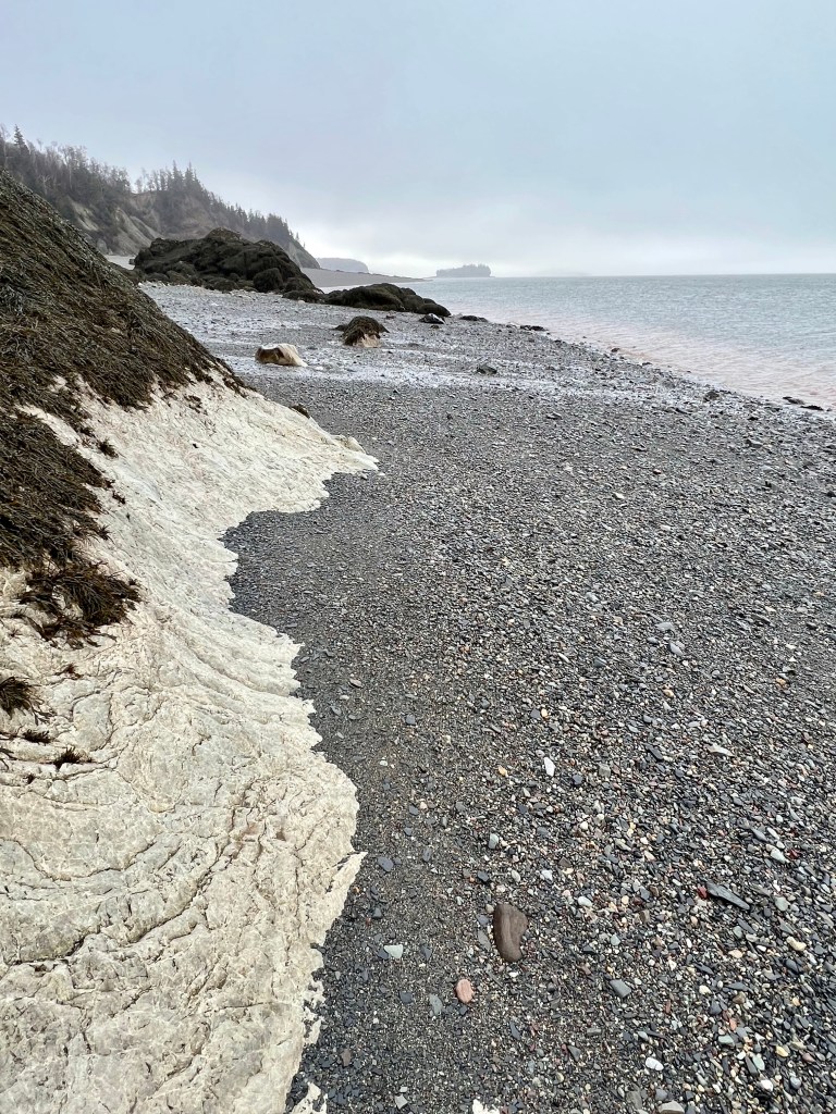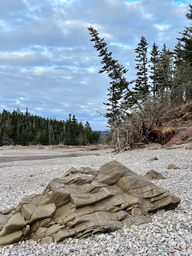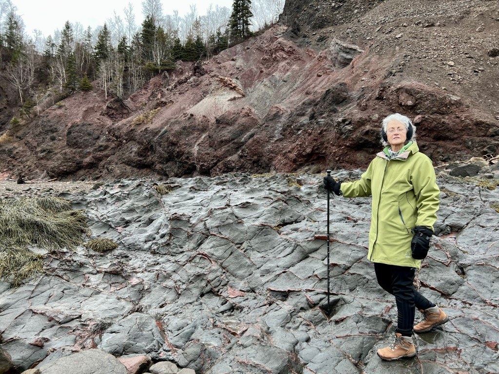 Hike Insights: keep in mind that this was an ideal winter hike with little snow and no ice anywhere at a temperature around 0 Celsius. The distance was just over 10 km return. Most challenging were the approaches to Horseshoe Cove Beach and the rocky natural road from the gate down to Cape d’Or. We were fortunate that there was no snow or ice cover.