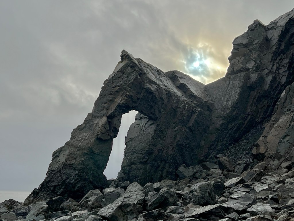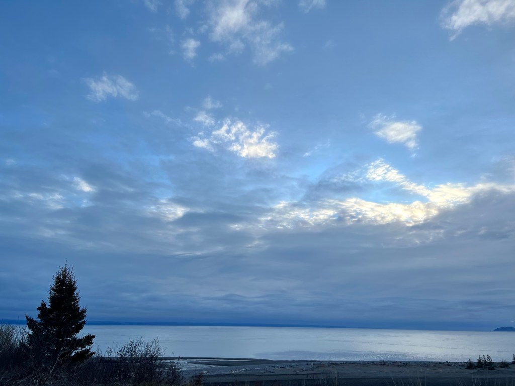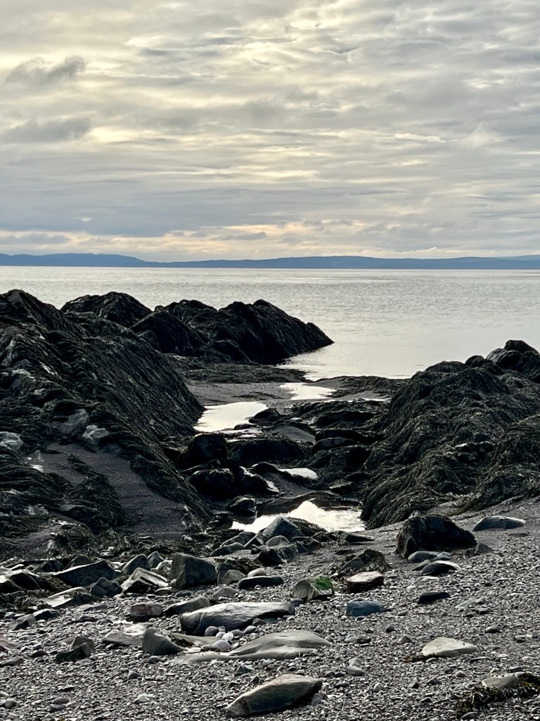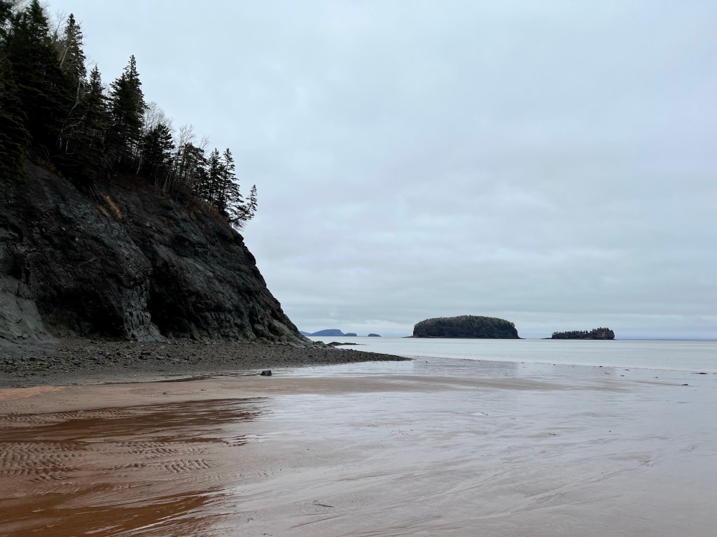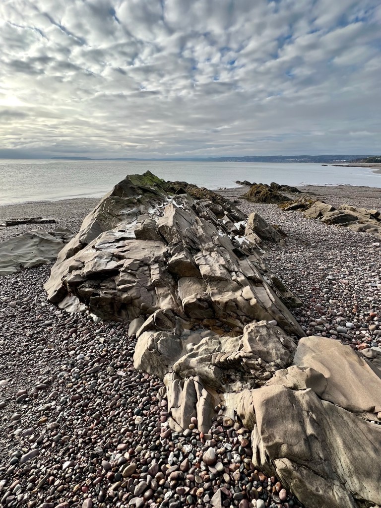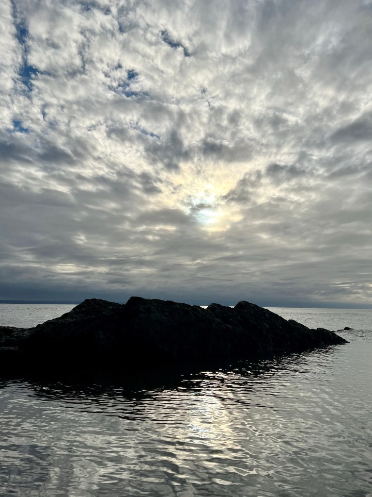 Our first stop was at Horseshoe Cove. We often come here in the summer with a picnic, camping chairs and friends to spend an afternoon. Today was the first time I experienced this special beach at high tide. The clouds, sky and light made for some memorable scenery. Rested and refreshed we soon set out on the last kilometer to our final destination.