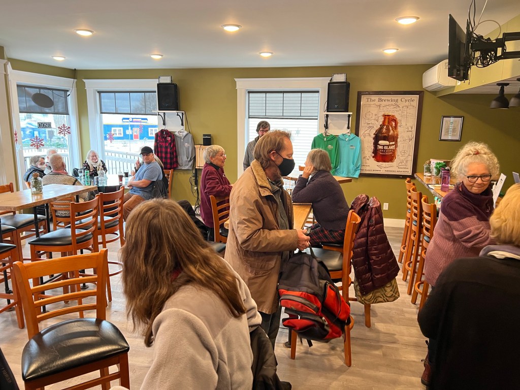 Following the two Saturday sessions we participated in a literary reading which really meant: sharing our work. The place: Two Islands Brewery on Main Street this afternoon.
