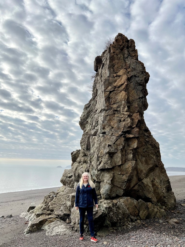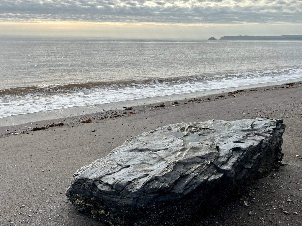 Daylight is moving toward sunset… I can hardly believe how early the sun disappears these days! By 4:30 pm it gets dark. I just returned from an afternoon at the Fibre Guild where I fulfilled my obligation of sharing my knowledge of sewing machine maintenance… so different from hiking the beaches😜 but a vital part of my former life.