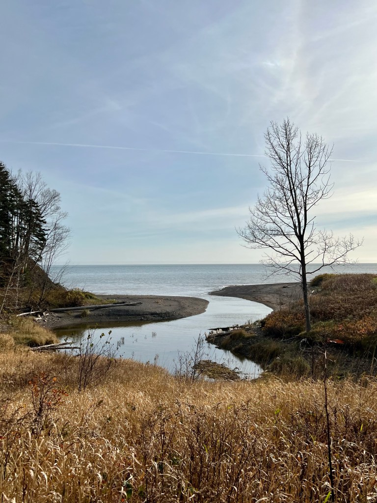 …while crossing the bridge over the Parrsboro Aboiteau. While I enjoy this view daily, this afternoon reminded me of how much interest and beauty is all around. I zoomed in on special spots to capture ripples on the surface, the edge of the shore and rocks.