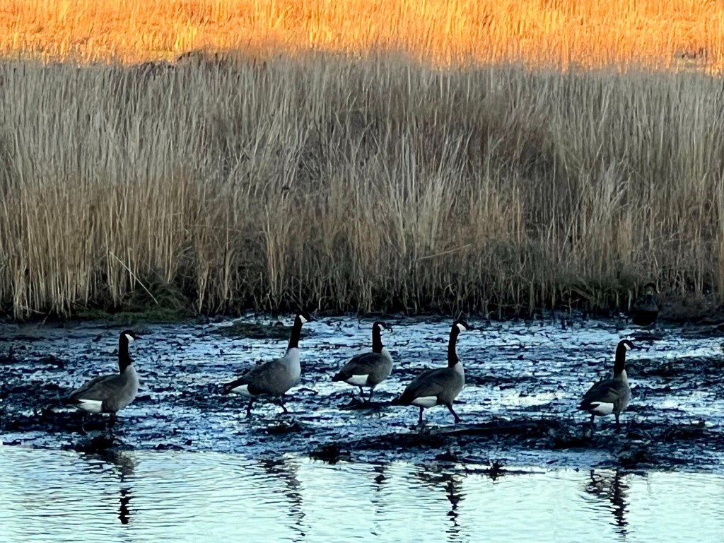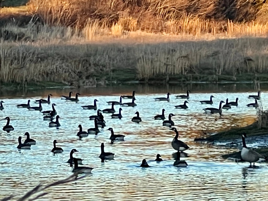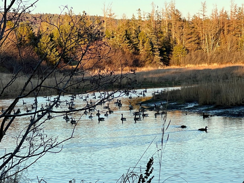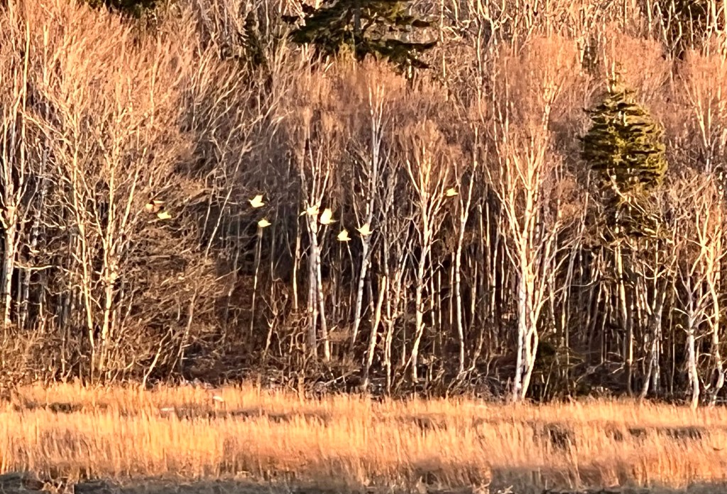 With the large flock loudly honking and moving toward the lower part of the Aboiteau I discovered that the flock further up river seemed oblivious to my approach. The angle of the sun on the marsh grass, the bright blue sky reflecting off the water and nature at its best – I wouldn’t want to be anywhere else.