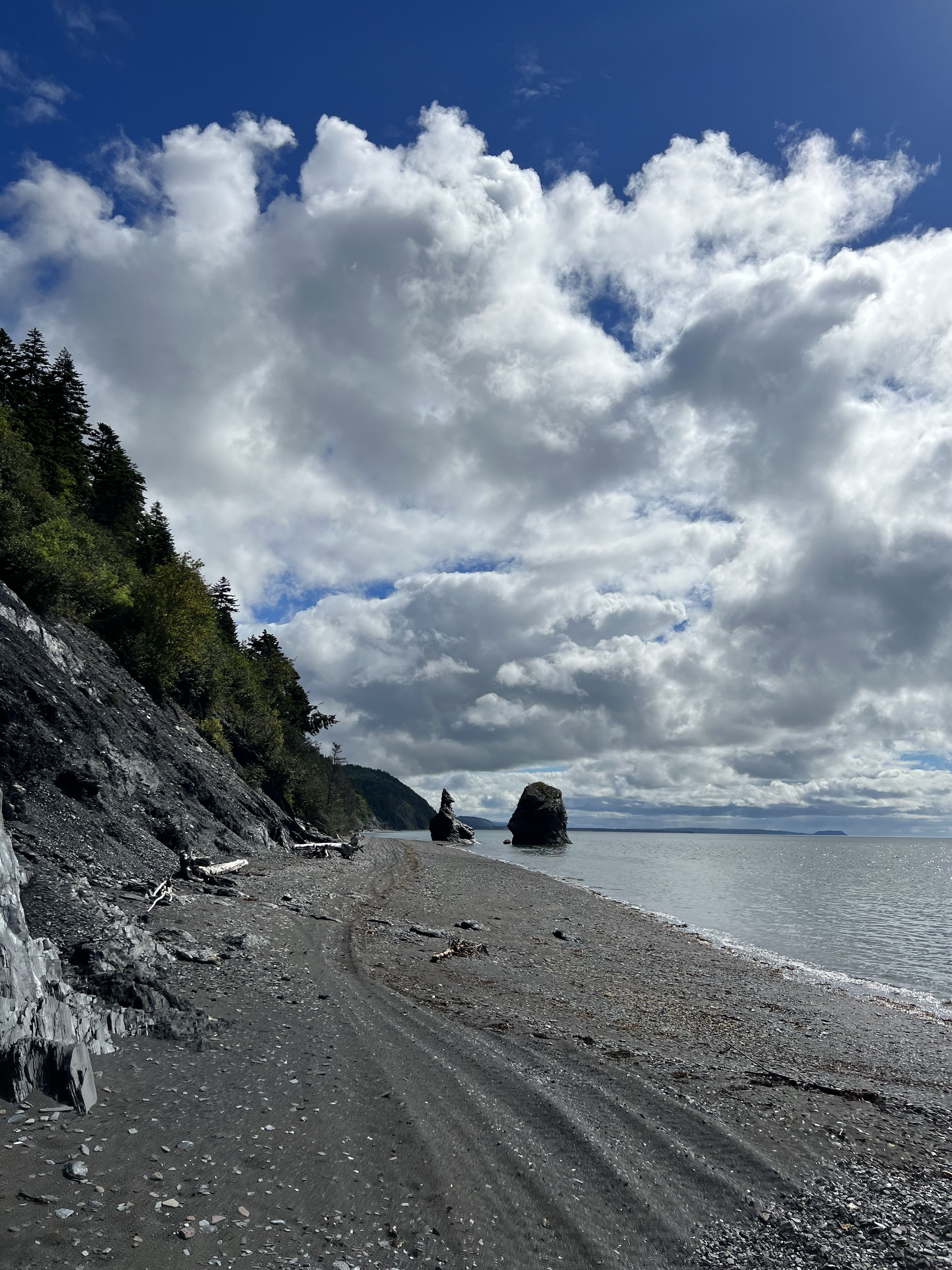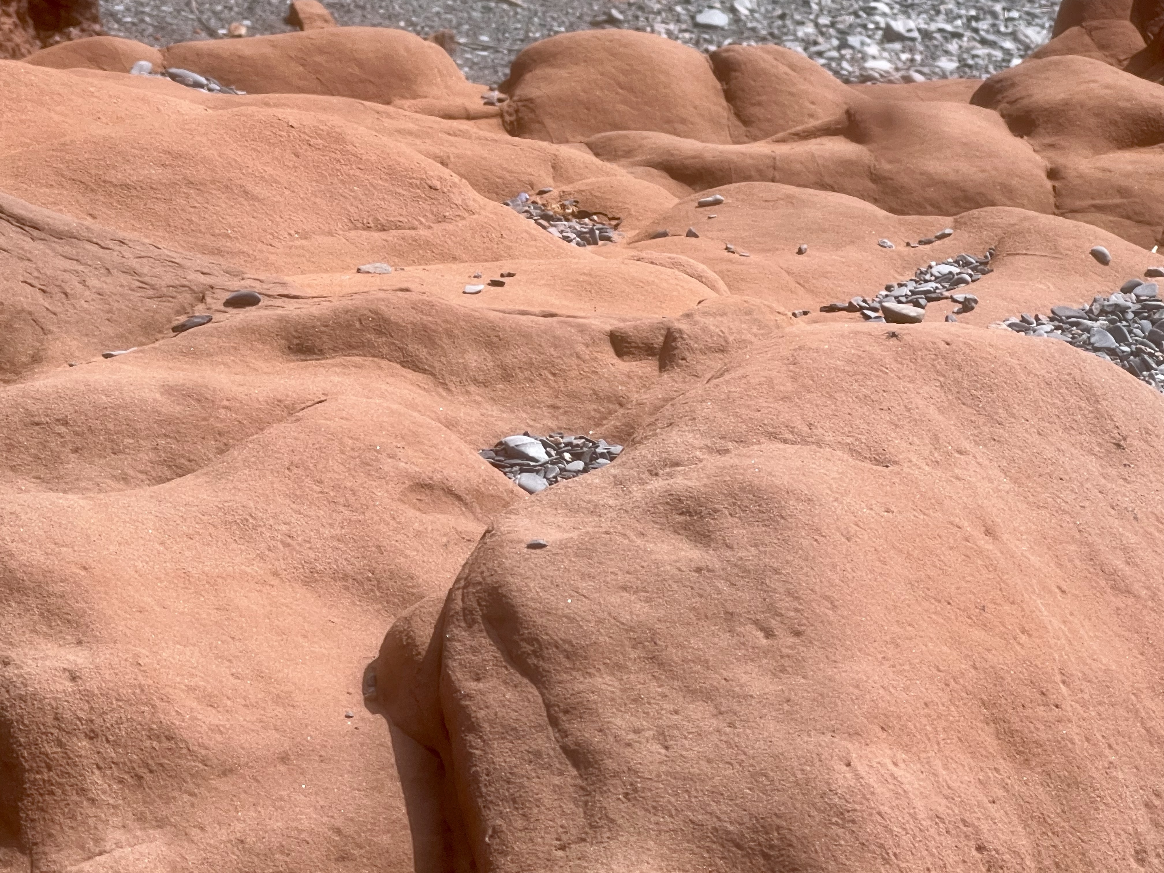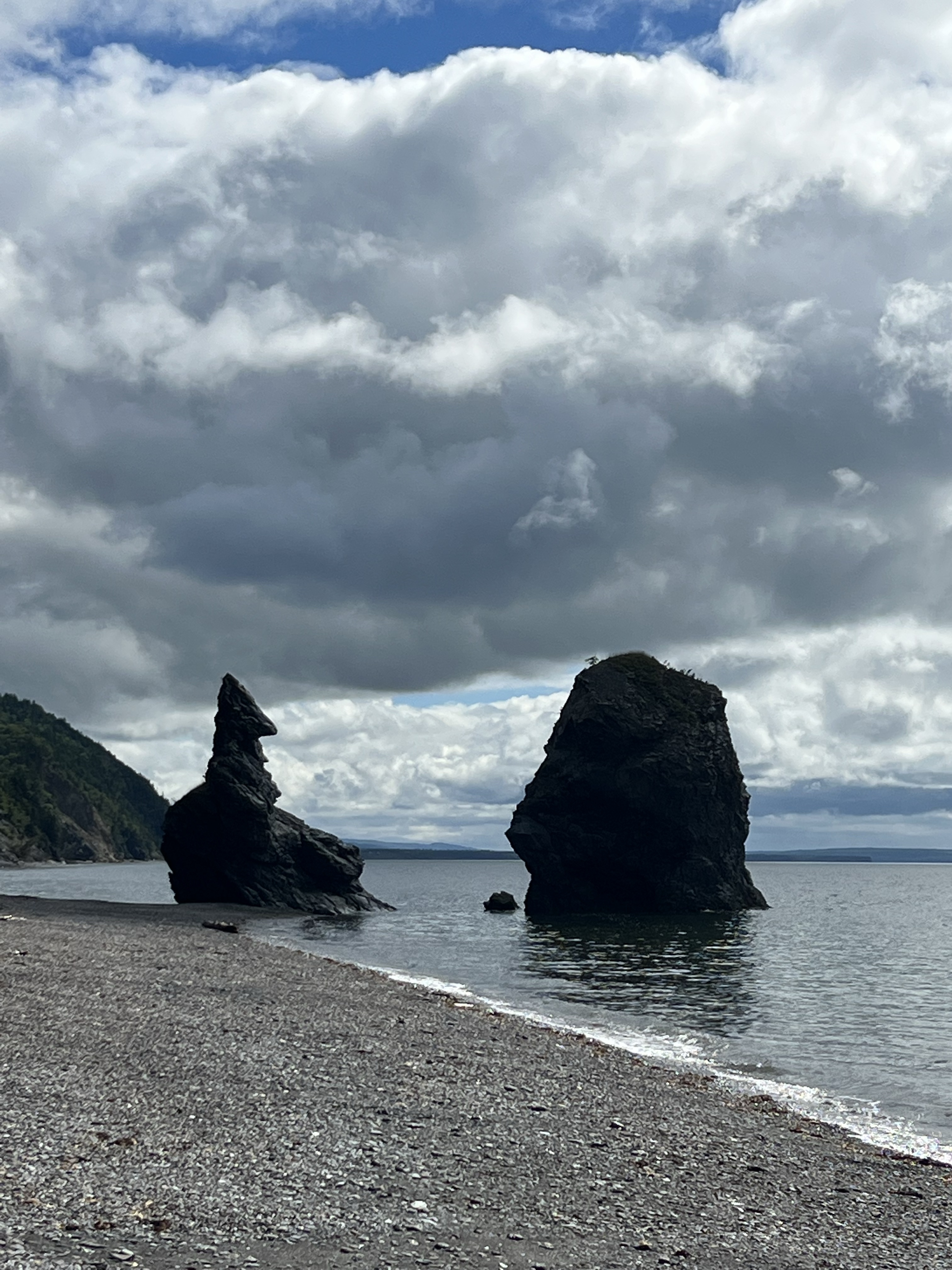 The main reason for the trip was to drop off artwork for a solo exhibition at the Grand Manan Art Gallery. The show opens tomorrow, August 21st. Since exhibition openings are still not organized I did not take the time to stay. We had some time before we had to be at the ferry dock for the sailing to mainland New Brunswick. We discovered Castalia Marsh where we walked the beach at low tide.