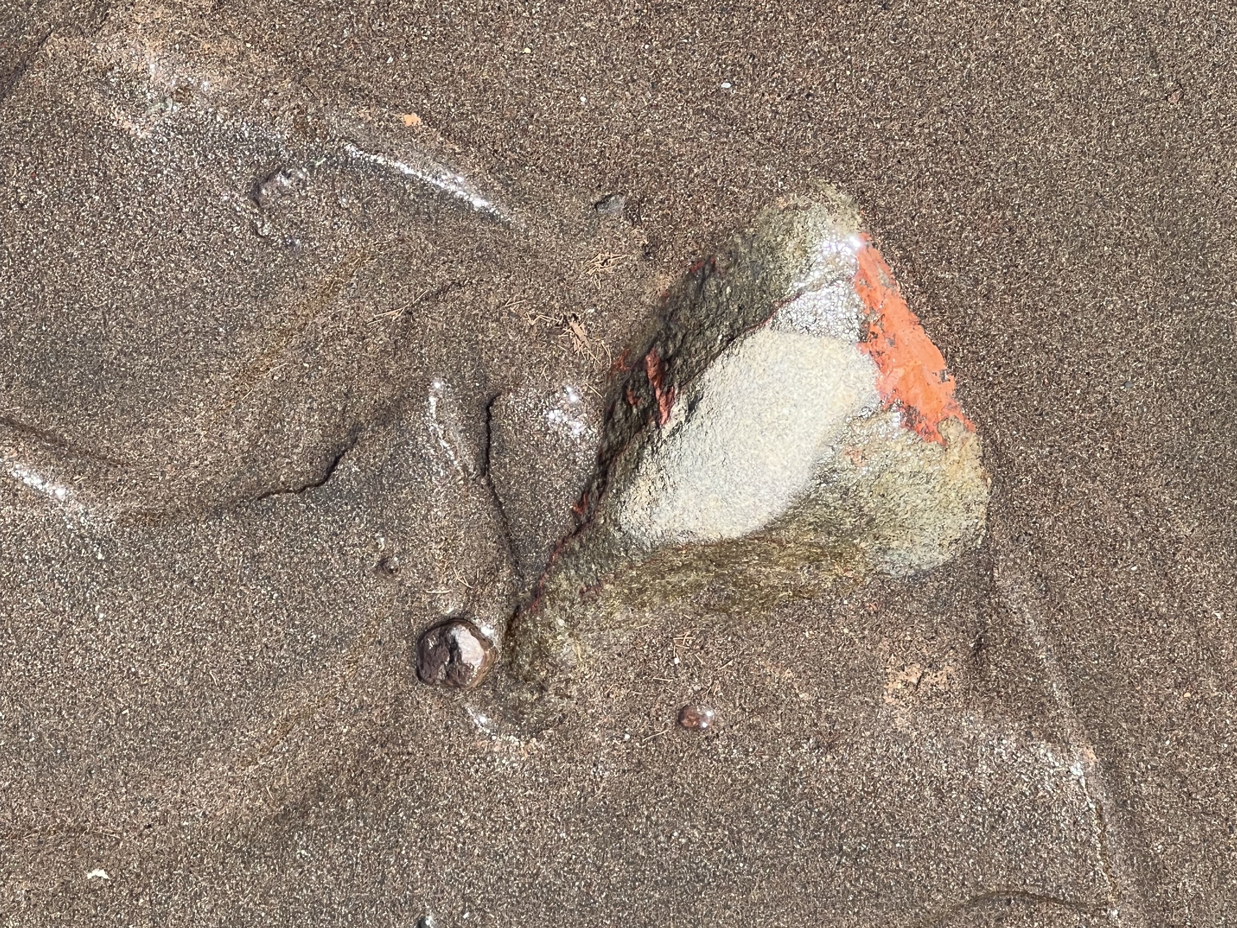 Checking in from Brookville Beach today. I have logged about ninety minutes along the most colourful beach and the tide is turning. Time to turn around… the wind has changed and clouds are moving in!