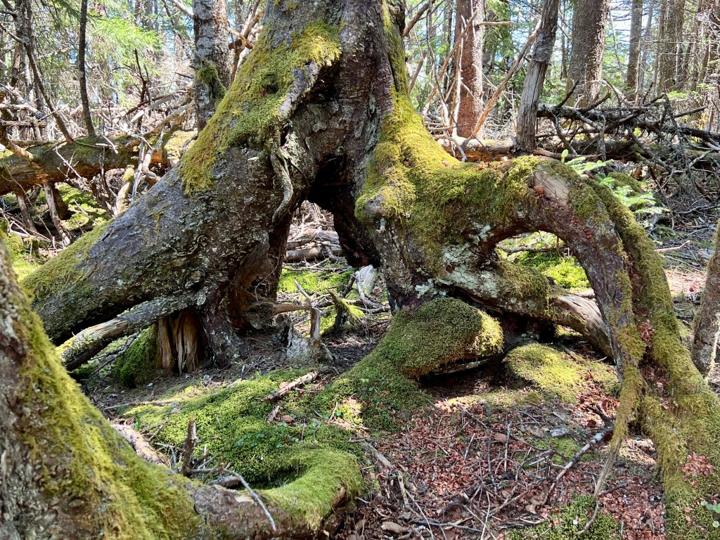 There it was, an ancient tree with roots raised like a dancer lifts a leg. Covered in moss and dappled with sunlight…