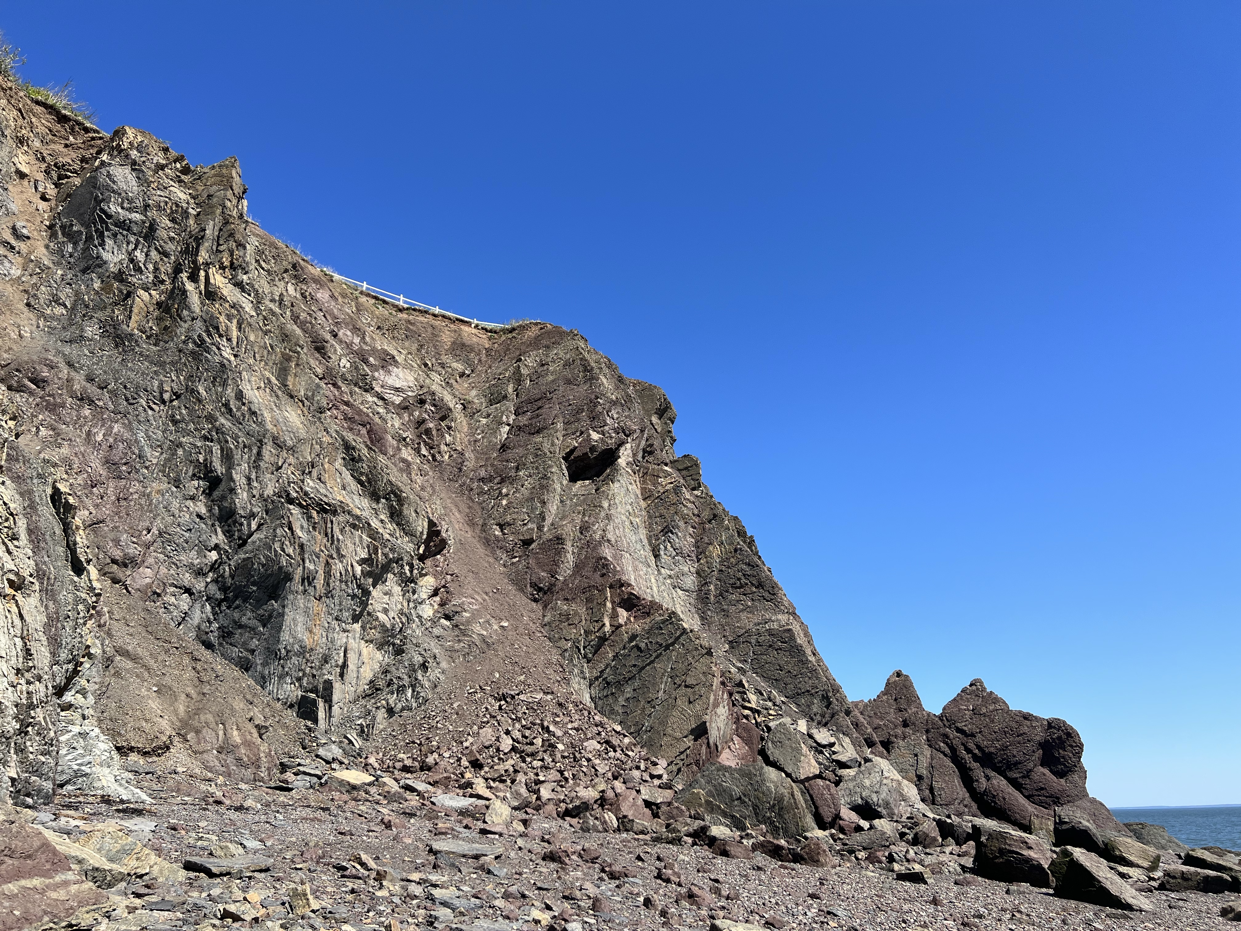 Thanks to Fundy GeoPark Geoscientist Caleb Grant the tour was once again informative and enjoyable. We stayed on the suggested loop and learned about the former bustling harbour of Eatonville and Anderson Cove Raised Beach. Caleb is passionate about geology and natural history. His tours are educational and sprinkled with humour throughout.