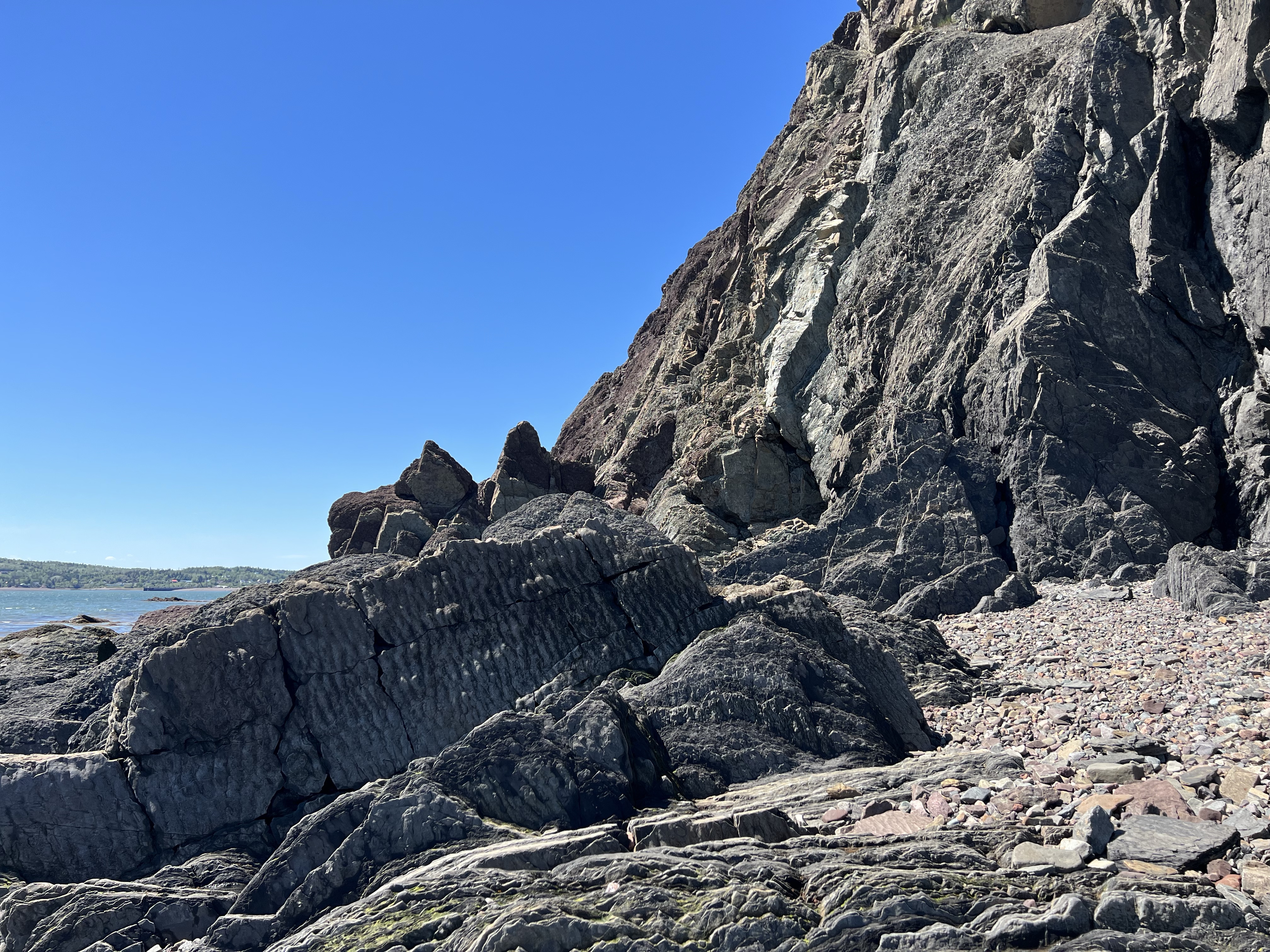Images cannot really describe the actual experience of six hikers dwarfed by the 600’ high cliffs standing tall against the mighty Bay of Fundy.