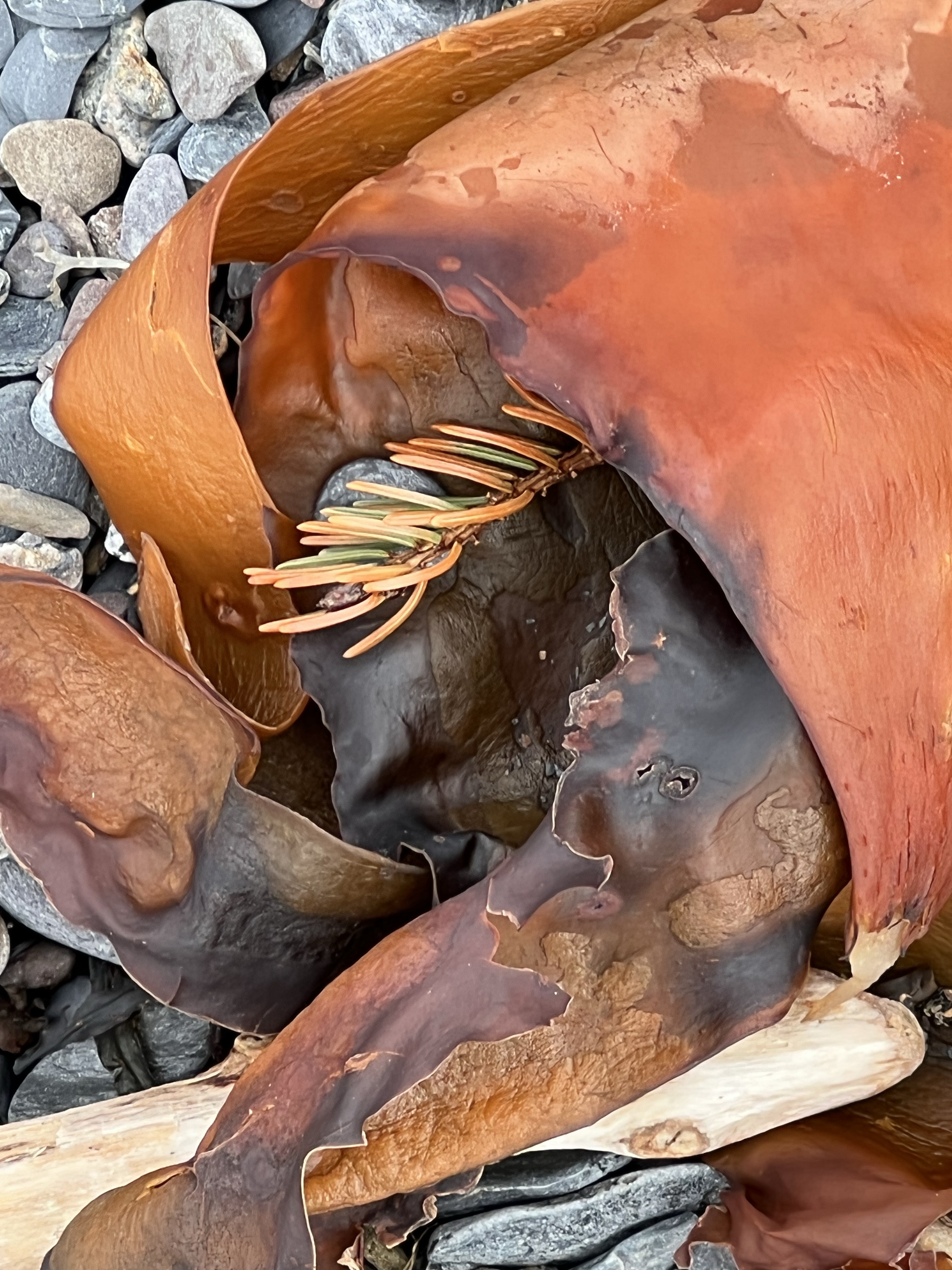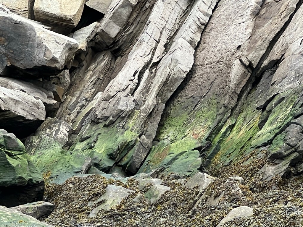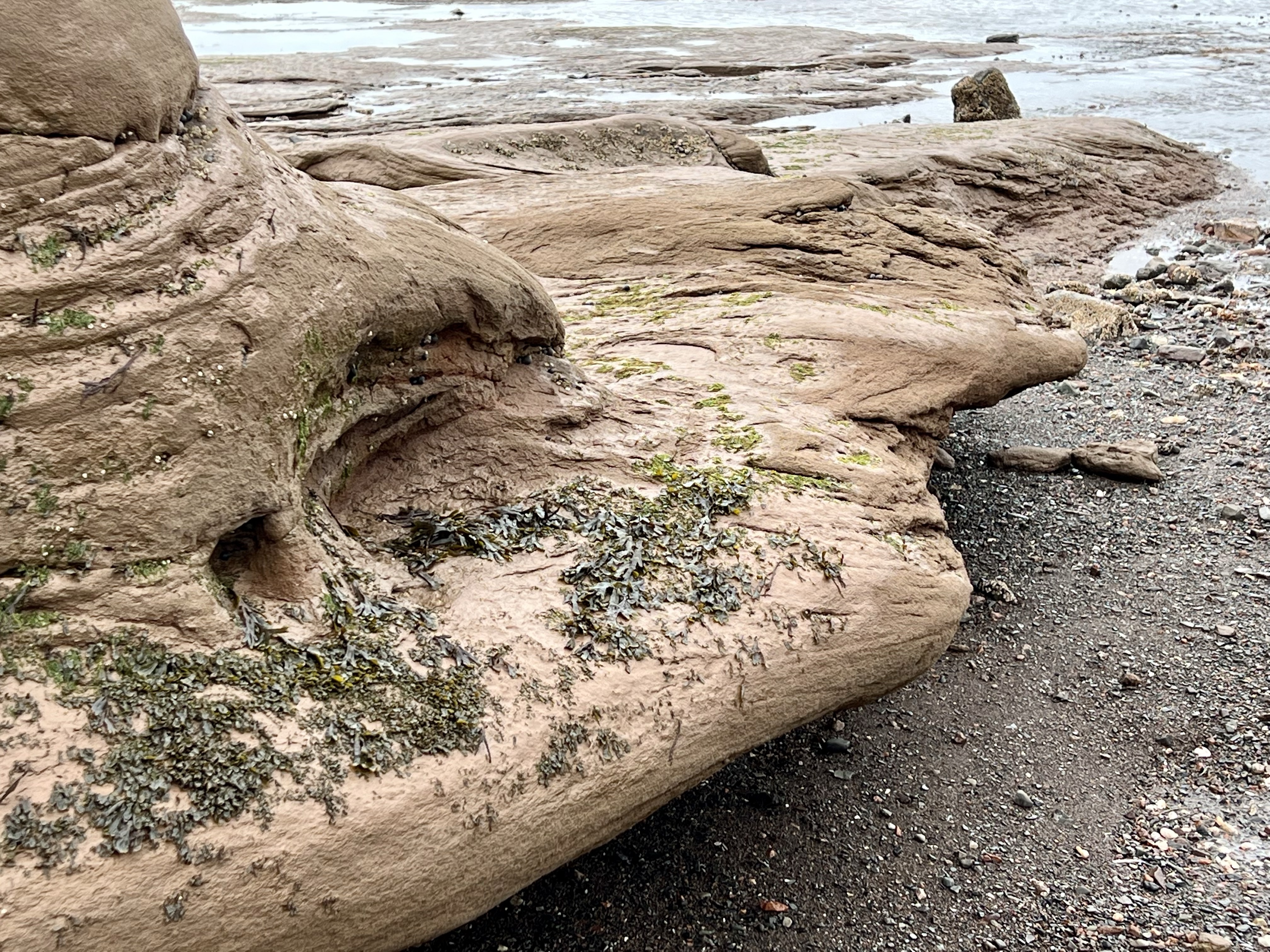 Each stretch of rocky shore offers so much to explore. We walked along the high tide line with the tidal river far below separating us from the bank across from and overlooking the main beach.