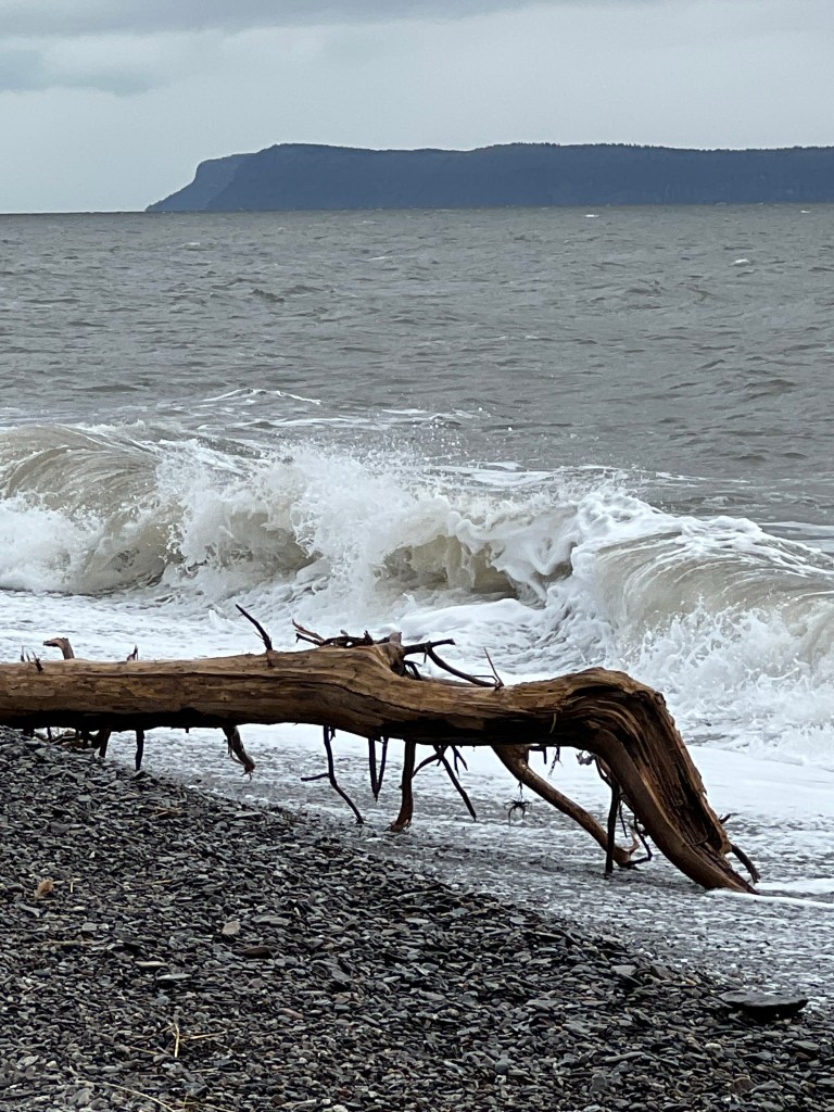 A grey afternoon threatening rain won’t keep us at home now that the temperatures are rising. My friend and I headed down shore toward Port Greville and decided to explore a beach we had not visited before.