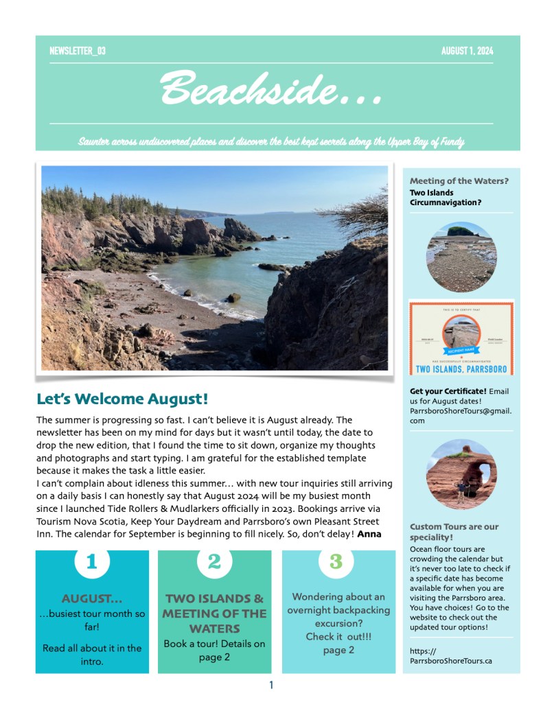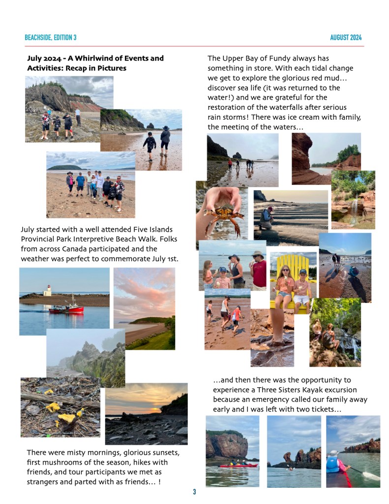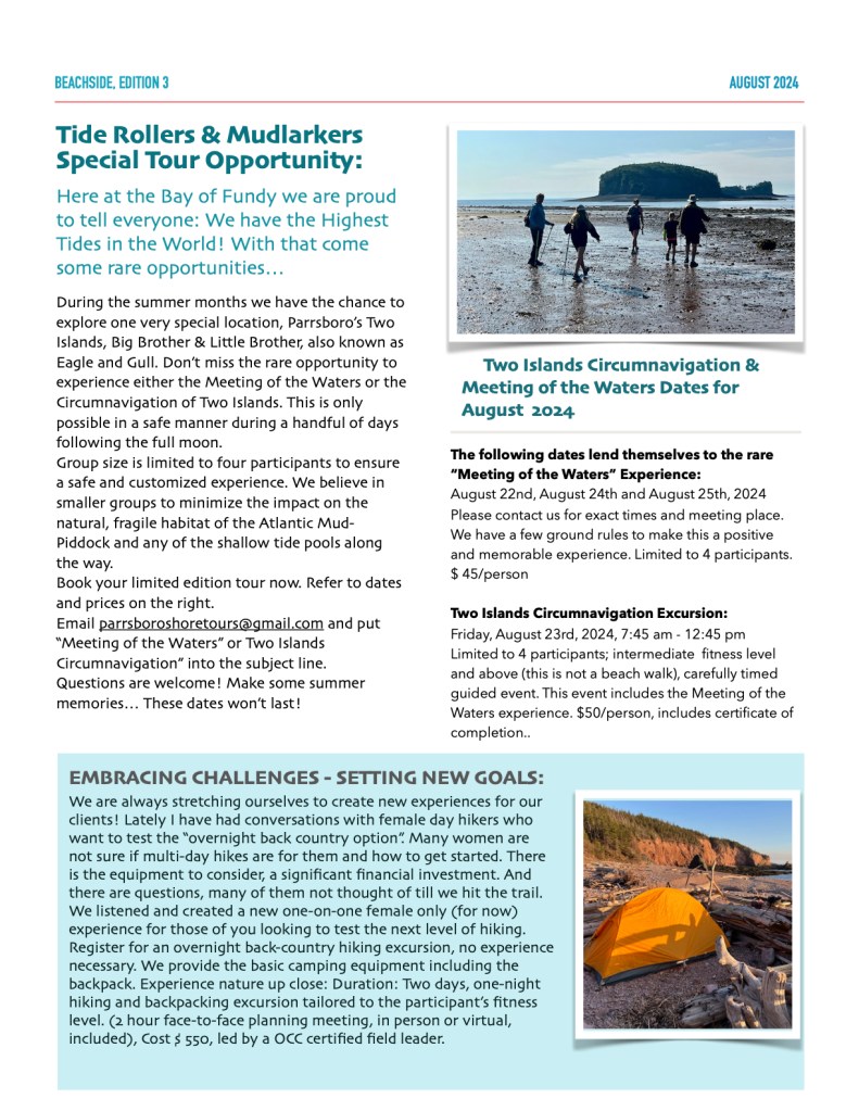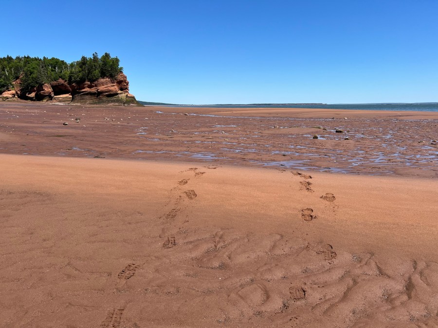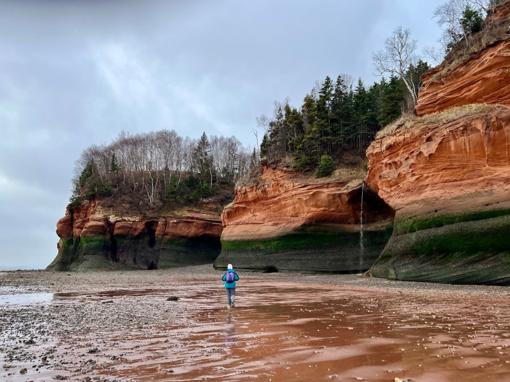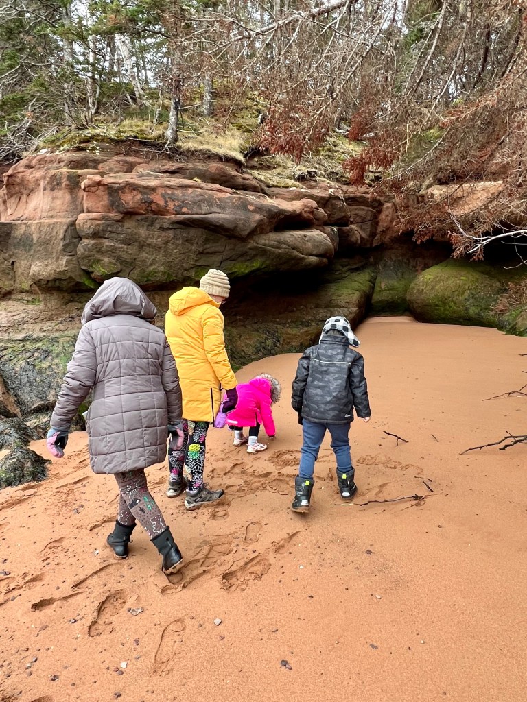 When designing a family-friendly tour, we carefully select destinations that are age-appropriate in both distance and difficulty. We aim for terrain that’s inviting, not intimidating, with lots of natural interest along the way—think tide pools teeming with life, soft sand underfoot, and hidden treasures to discover. Long stretches of sand are ideal for little legs, and we always include moments of magic: a peek at where the oldest dinosaur in Canada was found, a hermit crab scuttling across a tide pool, periwinkle snails tucked under rocks, sea grass waving gently in the current, or a perfectly smoothed piece of beach glass—“mermaid tears,” as we like to call them.