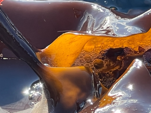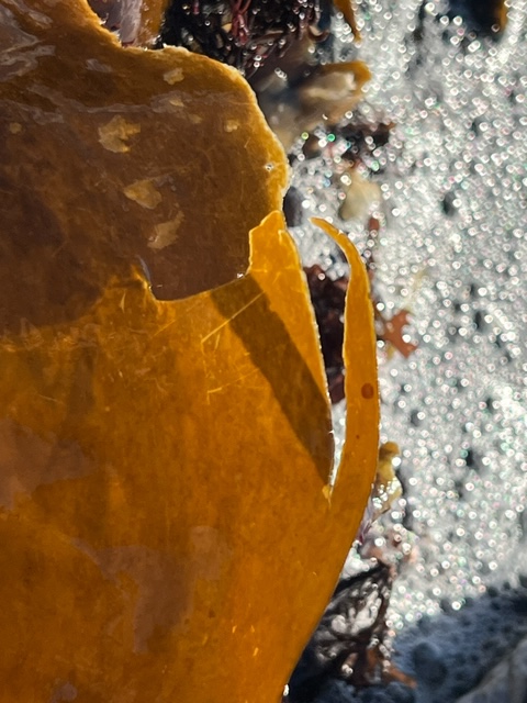 I was still in “trying out the new camera” mode. Bending down to capture the wet folds and sensual curves of the kelp against the foamy waves with bright sunshine providing the perfect lighting for the images rewarded me with these luscious images. Once again I am so pleased with the latest edition of the iPhone camera. What a privilege to learn its functions and capabilities in this rich environment.