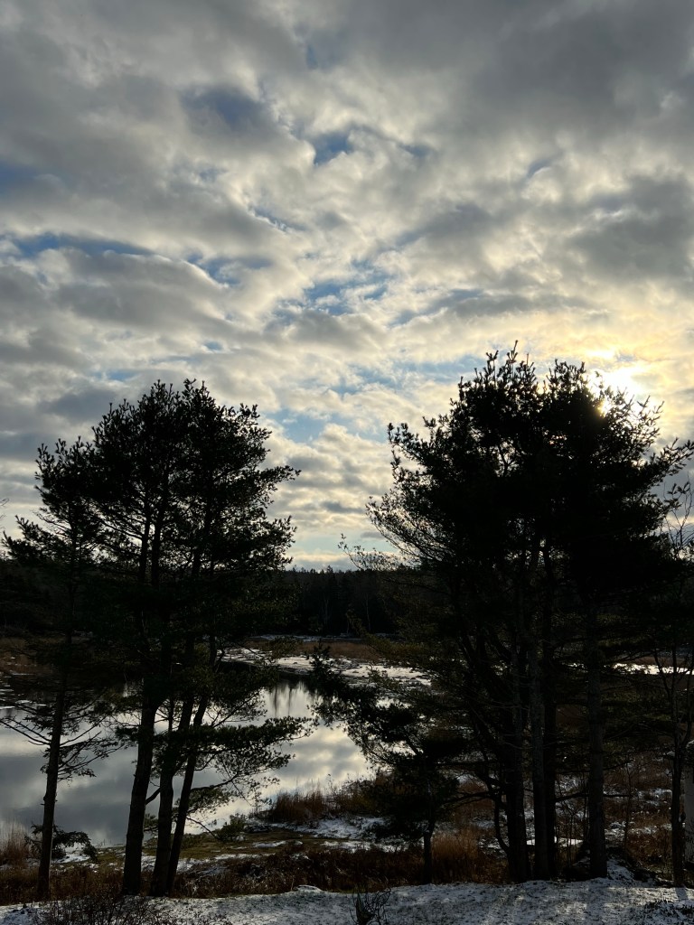 This poem came to mind while out for my morning walk. The sky was magical, seagulls and Canada geese drew my attention up and then across the Parrsboro Aboiteau. What light! So mysterious and perfect to set the stage for a reflective day.