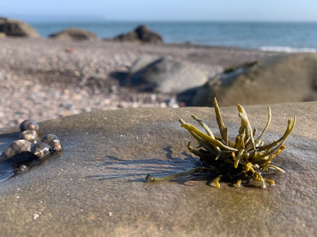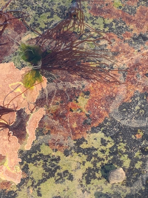 It was as if I had stopped thinking… my breathing slowed and my mind settled on the gifts of the sea. Without much effort or changing my position I observed lush seaweed dripping with moisture, tiny dulse plants promising a rich summer harvest, snails taking shelter in rock crevices and under plants. The bounty of the sea was all around me. The sound of constant waves, their foaming tongues rushing toward the sandy areas interrupted by smooth rocks, called for a pause.