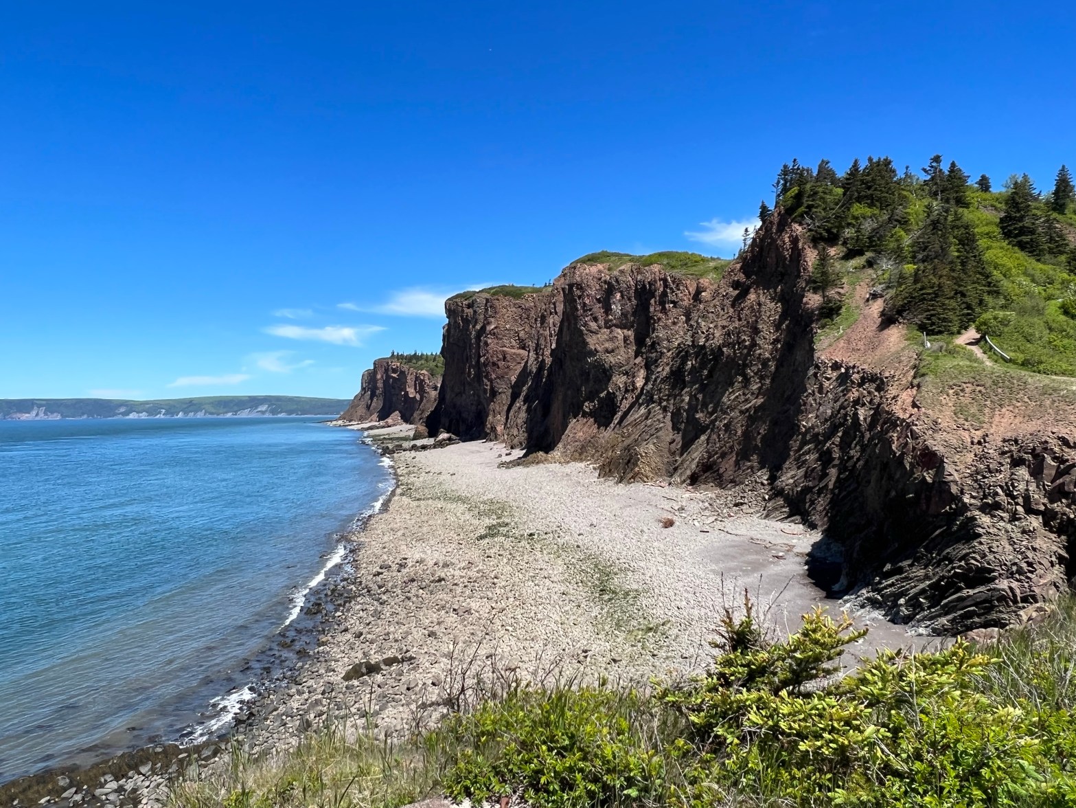 The sun returned today and set the stage for a fabulous day to explore the area with visitors. Our first stop was in West Advocate where we strolled along Driftwood Beach and admired Red Rocks at the Cape Chignecto Park entrance from afar. Thank goodness for four-wheel drive. The approach to Cape d’Or, our nextContinue reading “Tour Day: Parrsboro to Advocate and Back”