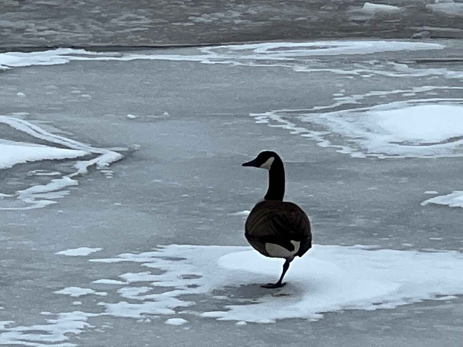She stood out, one leg tucked under to stay warm, balancing perfectly still on the ice in the Aboiteau. Such a sight to behold!